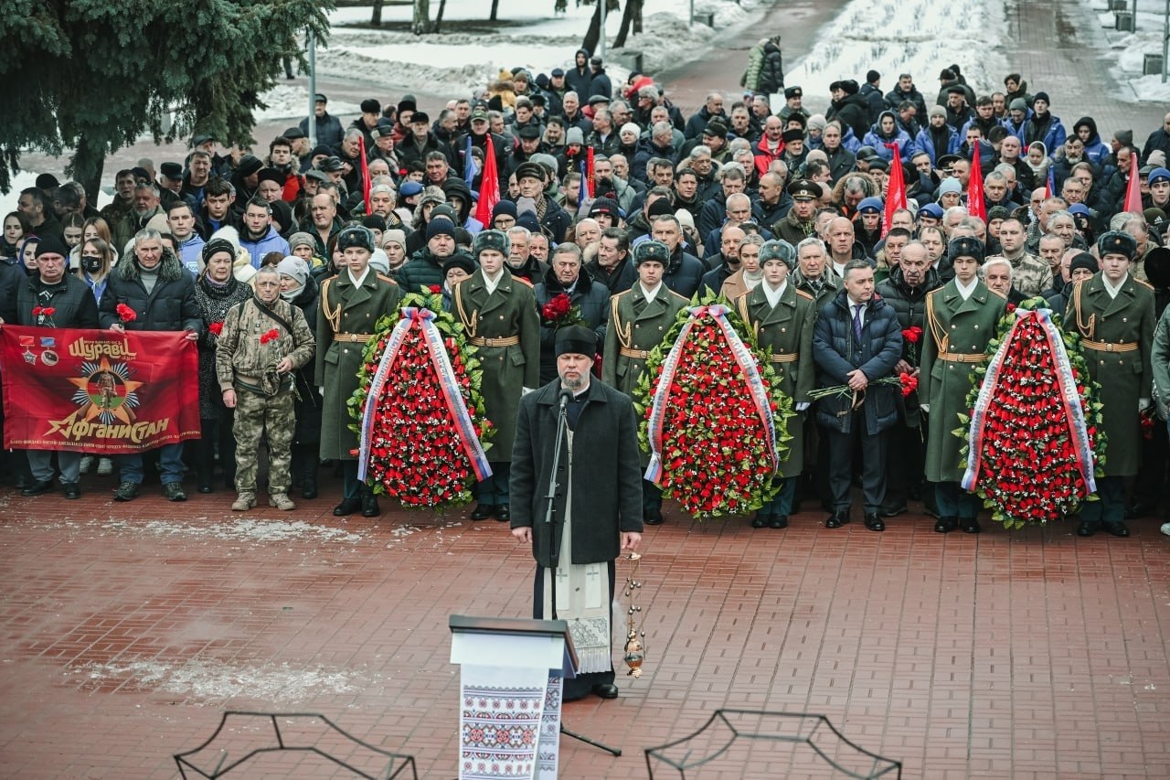В Курске традиционно состоялась церемония возложения цветов и венков к мемориалу «Скорбящая мать» в Георгиевском сквере. В ней приняли участие министр внутренней политики Курской области Андрей Белоусов, председатель комитета региональной безопасности Олег Горячев, представители ветеранских организаций, депутаты, ветераны боевых действий и родственники погибших.