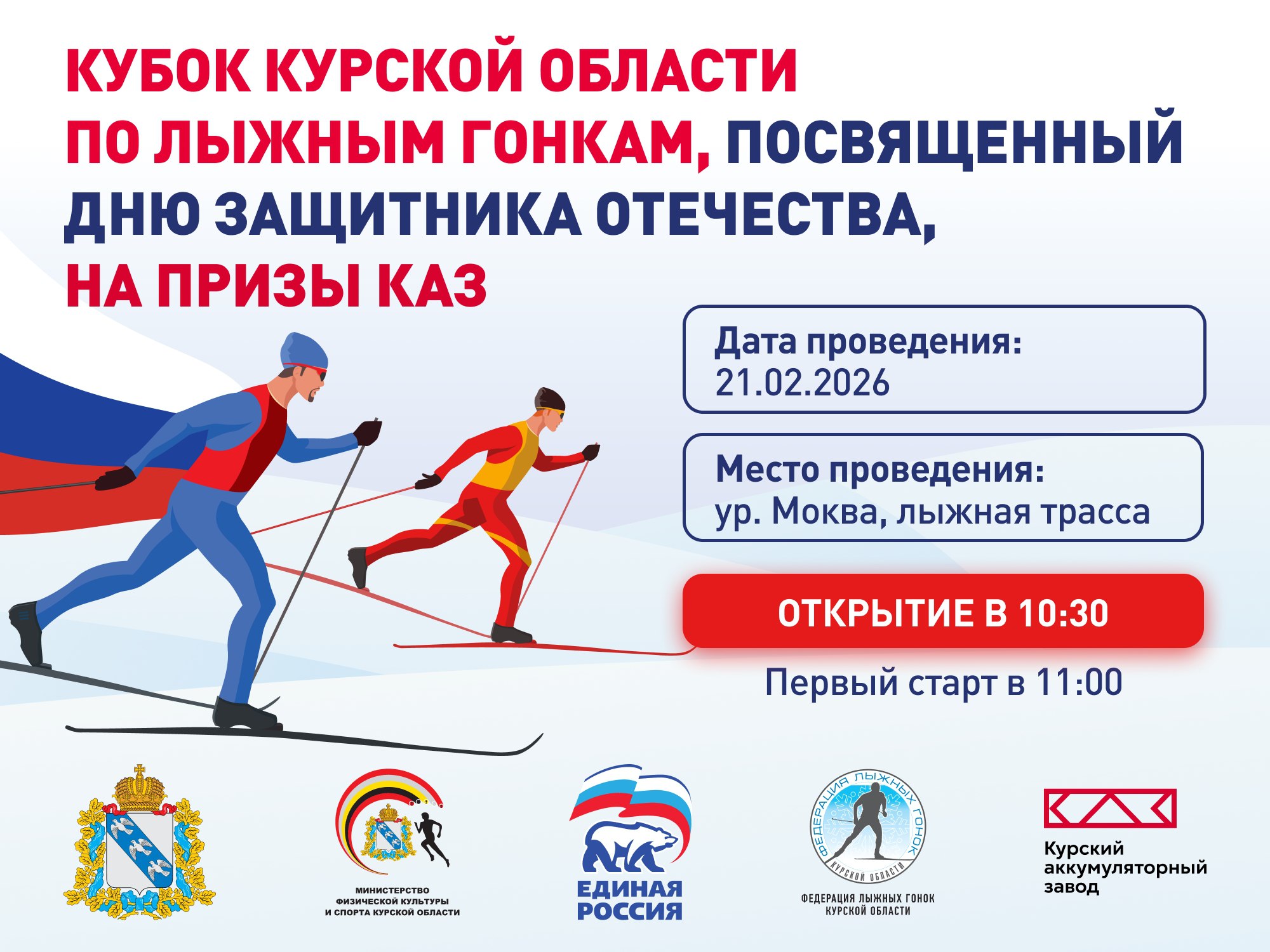 21 февраля в урочище «Солянка» (д. Моква) при поддержке Единой России состоится Кубок области по лыжным гонкам, посвященный Дню защитника Отечества, на призы Курского Аккумуляторного Завода.