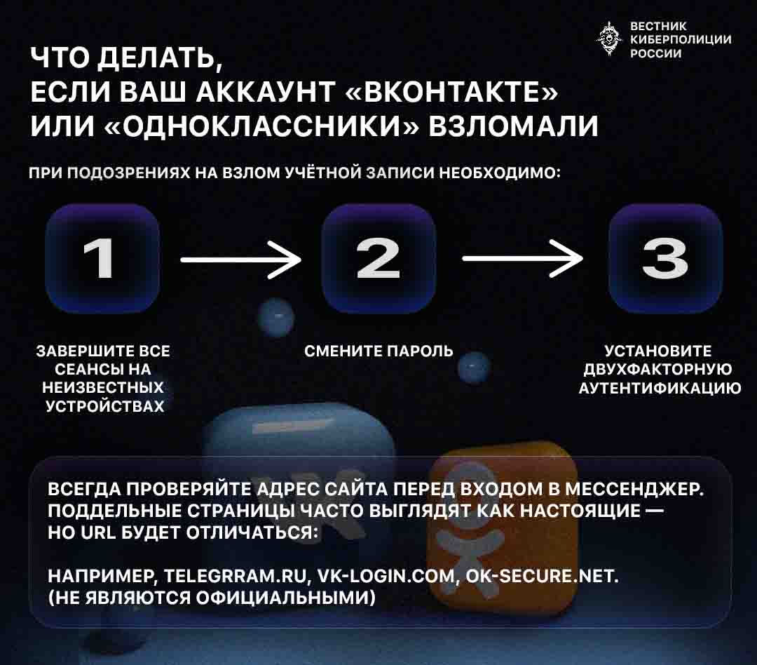 Предупредите своих родных и близких, чтобы они не переходили по ссылкам и не открывали файлы от вашего имени;