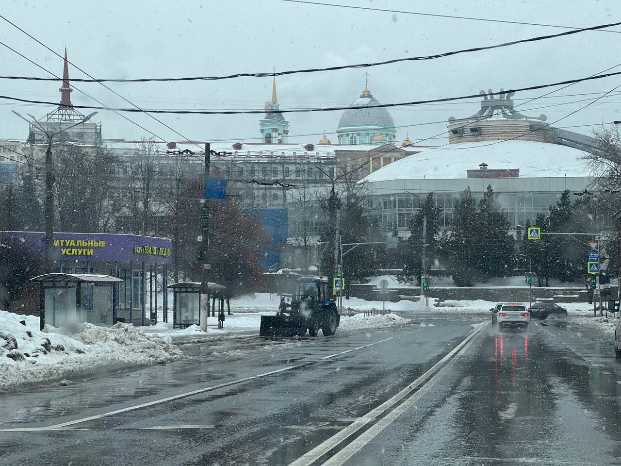 На Красной Армии специалисты очищают остановки общественного транспорта и проезжую часть.