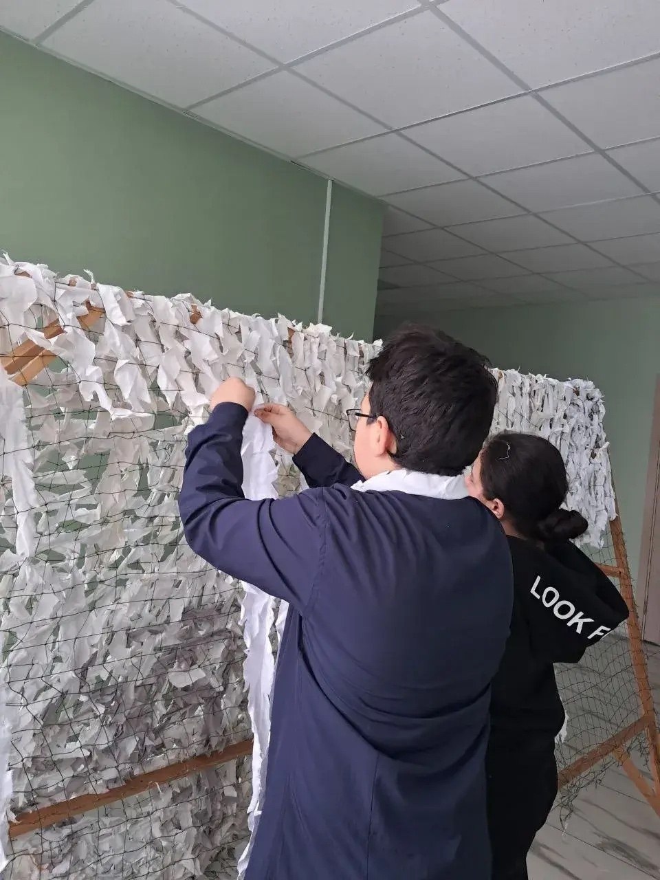 Учащиеся , учителя, сотрудники школы — все, кто хочет помочь нашим солдатам, собираются вместе и плетут маскировочные сети. Работая в команде, они приближают долгожданную победу, ведь маск сети защищают наших воинов. Добровольцы уверены, что тепло их рук и искренние мысли дойдут до наших защитников и придадут им сил!