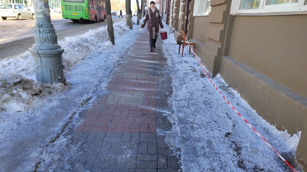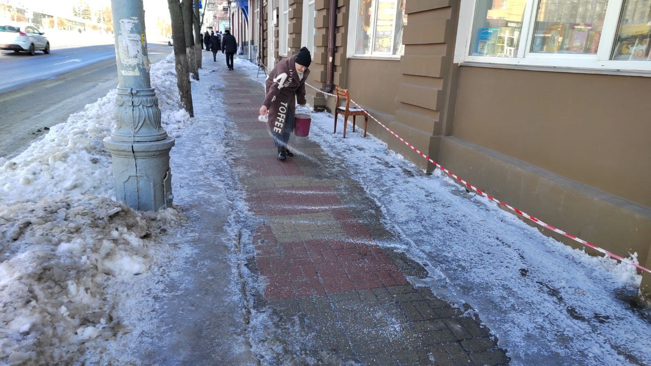 Сотрудники Центра поддержки молодежных инициатив обработали тротуар и вход в учреждение по улице Ленина в районе дома №15.