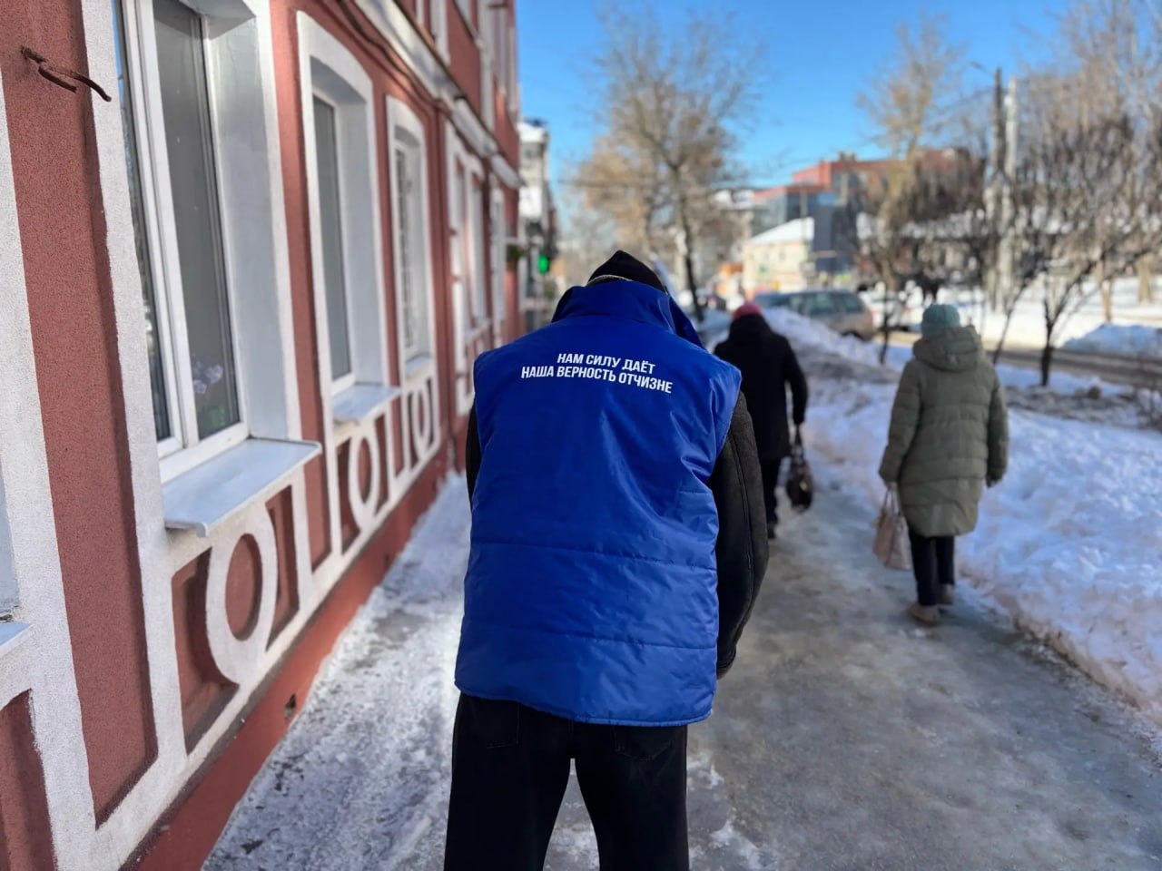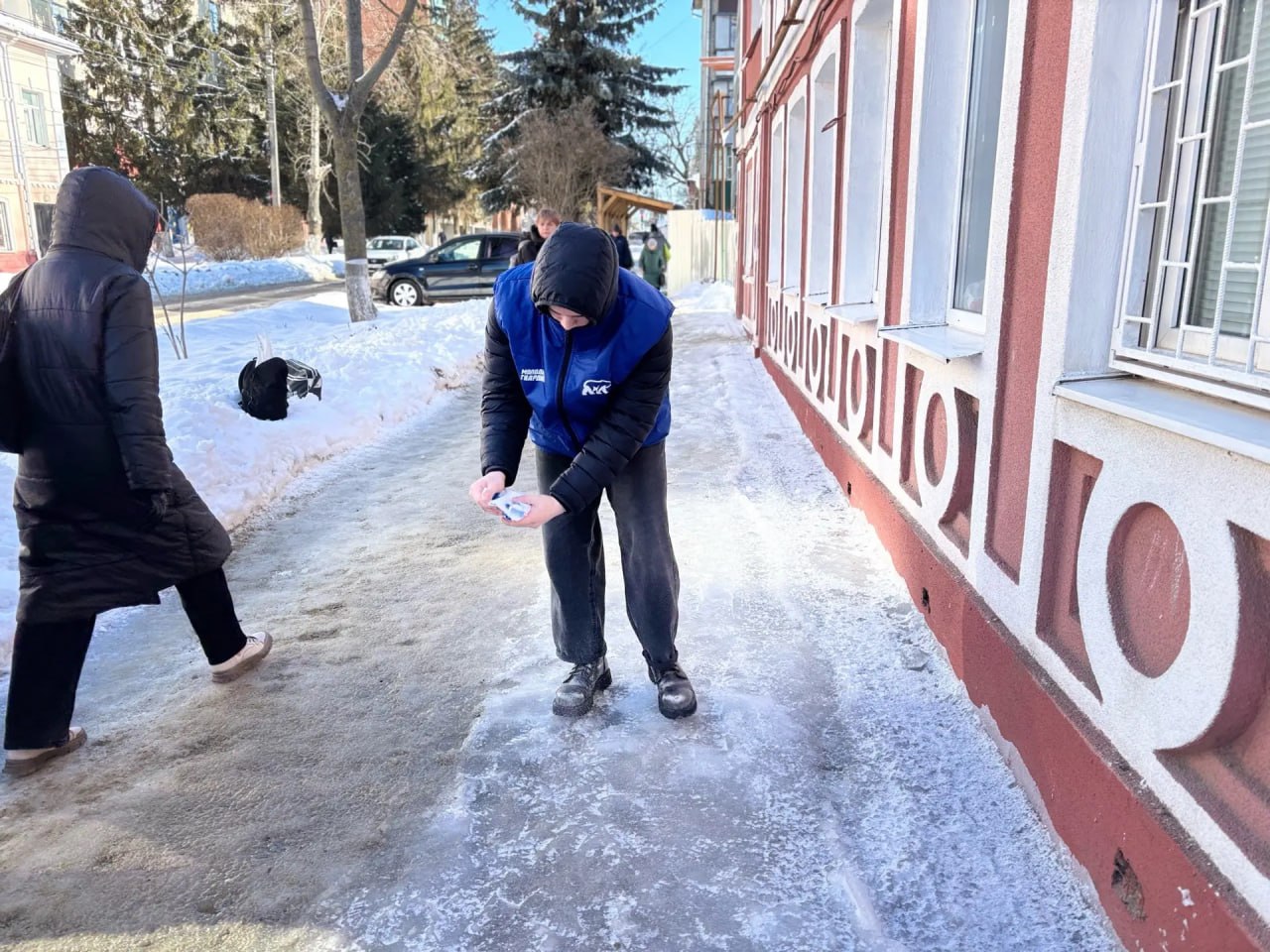 Волонтеры "Молодой гвардии" помогают обрабатывать улицы.