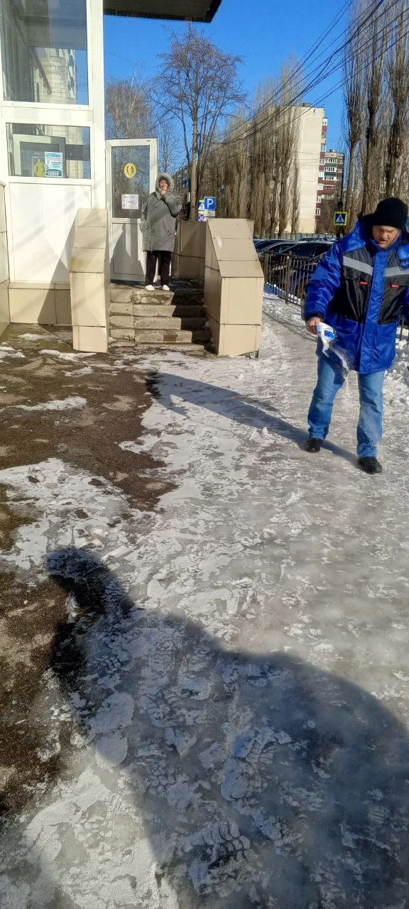 Другие участки округа помогают посыпать солью волонтеры «Молодой гвардии».