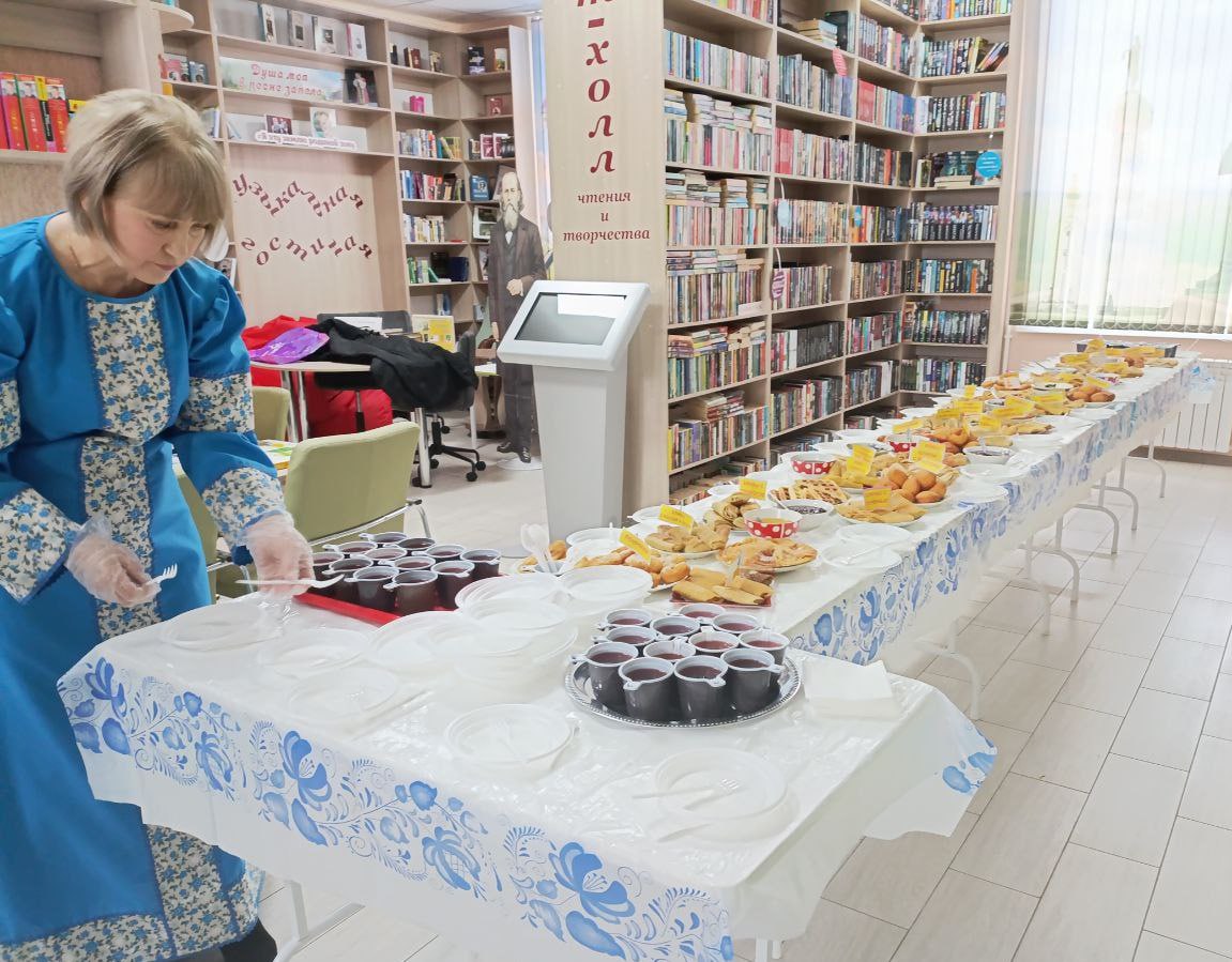 В конце мероприятия сотрудники библиотеки угостили всех гостей вкусными блинами.