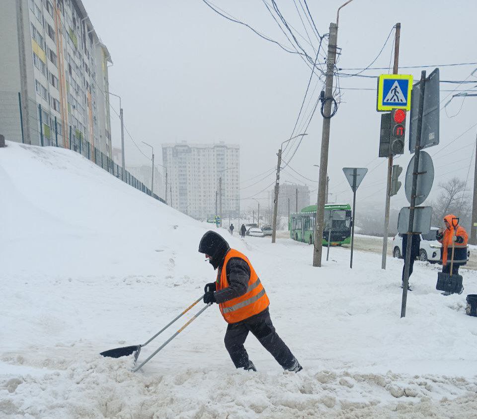 Уборка снега проходит во всех городских округах. Рабочие чистят пешеходные дорожки, подъездные карманы, остановочные площадки, лестничные спуски.