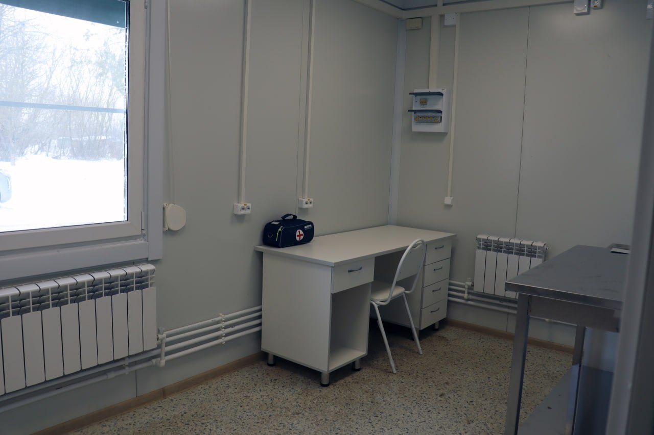 В новых зданиях предусмотрены кабинеты врача общей практики, процедурный, прививочный и смотровой с гинекологическим креслом, стерилизационная, зона ожидания, помещения для хранения лекарств и инвентаря, санузлы. Пункты укомплектованы современным медицинским оборудованием, включая электрокардиограф, кольпоскоп, дефибриллятор, регулятор расхода кислорода, паровой стерилизатор и фармацевтические холодильники.