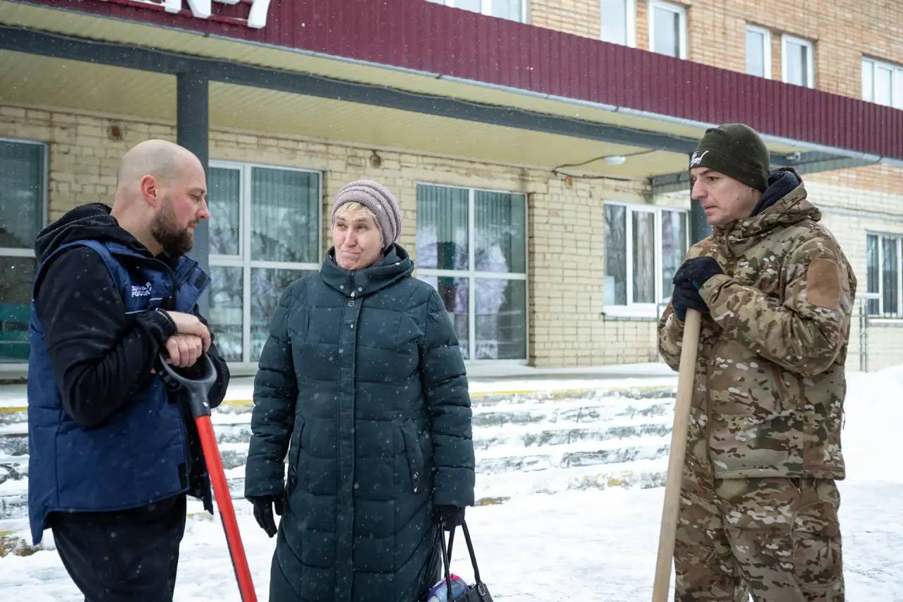Возле поликлиники № 7 помогли немного дворнику расчистить территорию и порожки. Убрали остановки, расчистили проезды к домам и поликлинике.