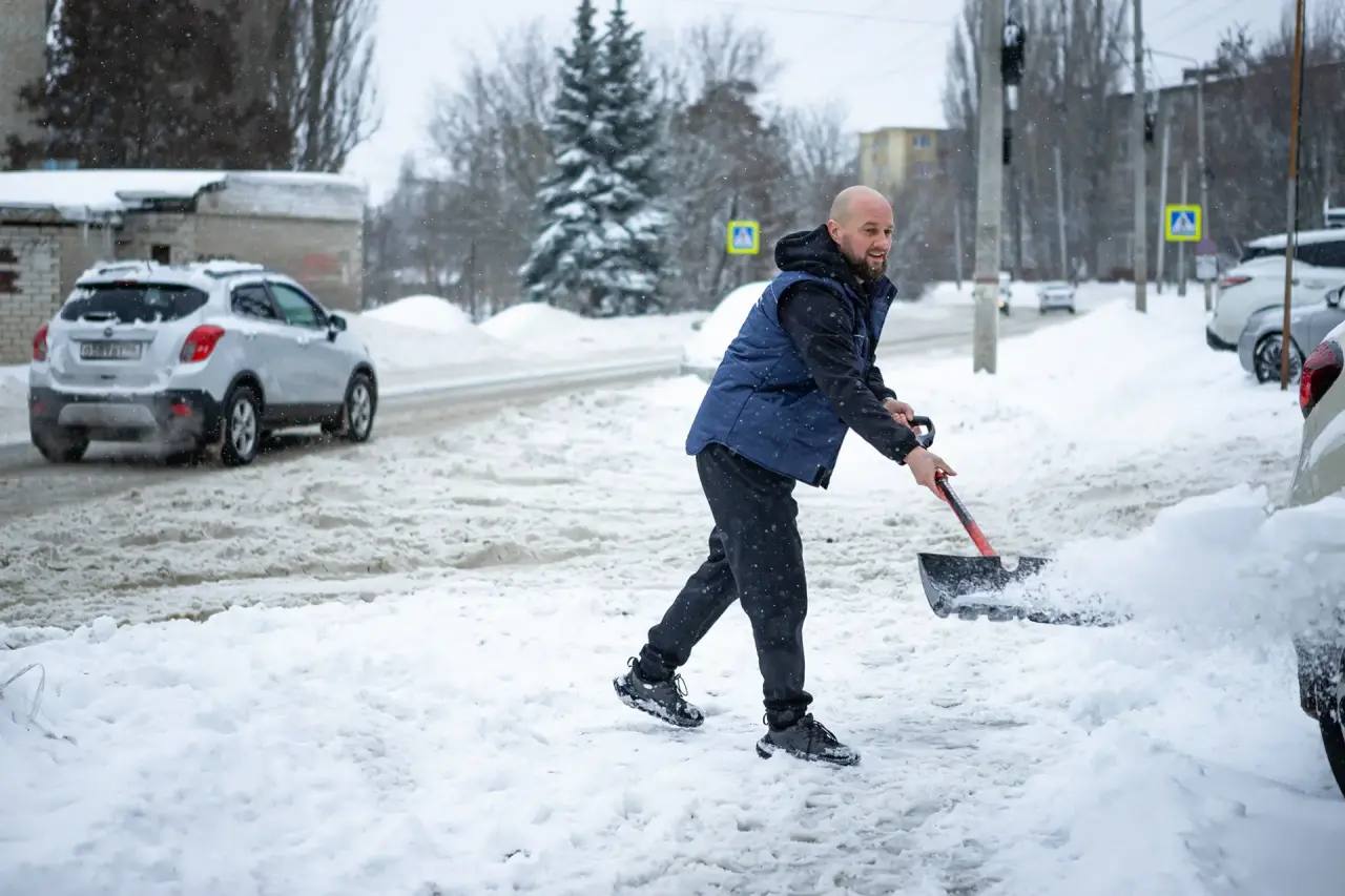Вместе с коллегами помогали дорожникам в расчистке города. Сегодня город накрыл мощный снегопад.