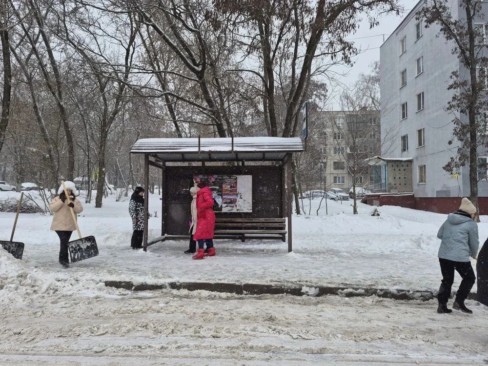 Управление экономики и прогнозирования Администрации города Курска провели работы по очистке остановки "Школа 49".