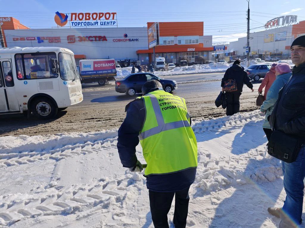 Сотрудники управления капитального строительства очистили остановку «Льговский поворот».