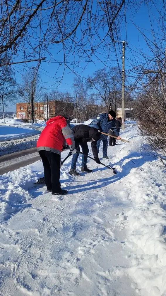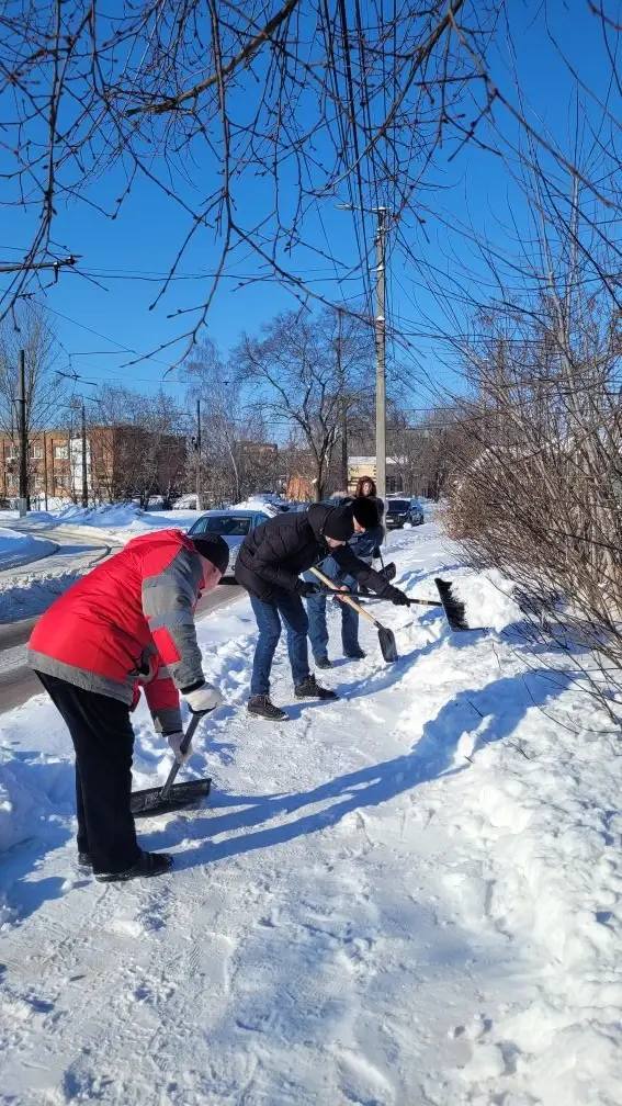 Совместными усилиями мы расчистили от снега пешеходные зоны, тротуары и подходы к объектам.
