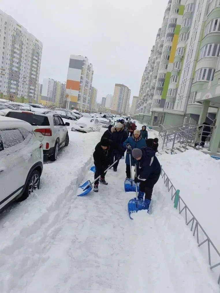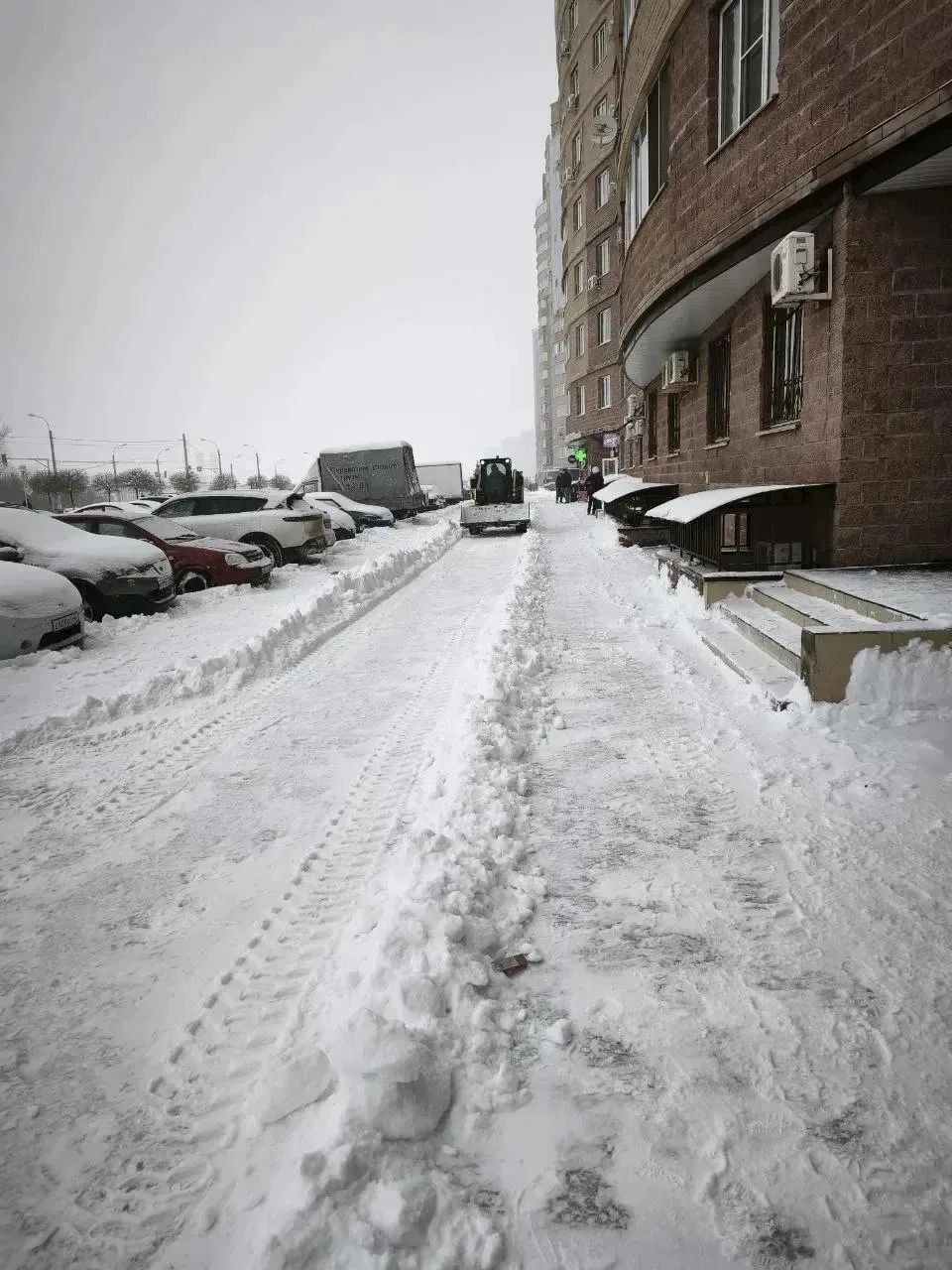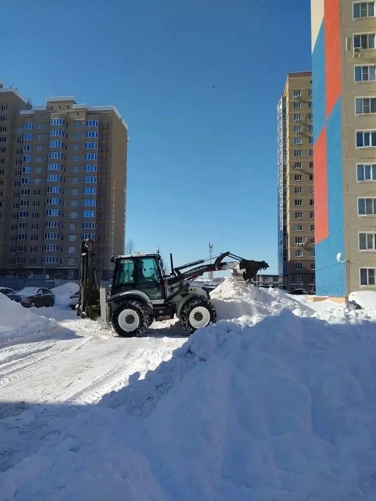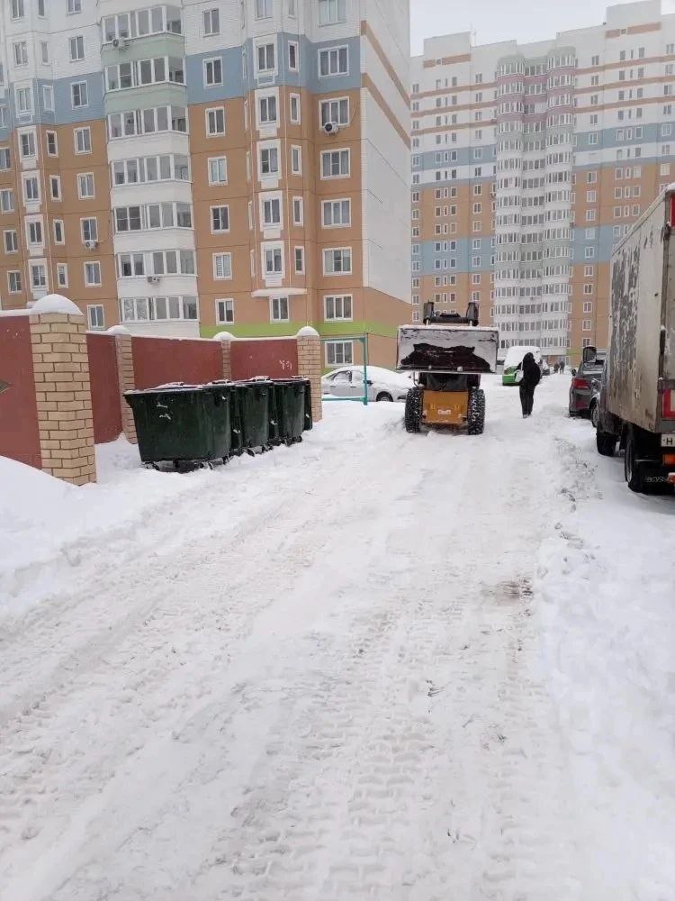 УК «Умный город» убирает улицу Домостроителей 1,2,3,4,5.