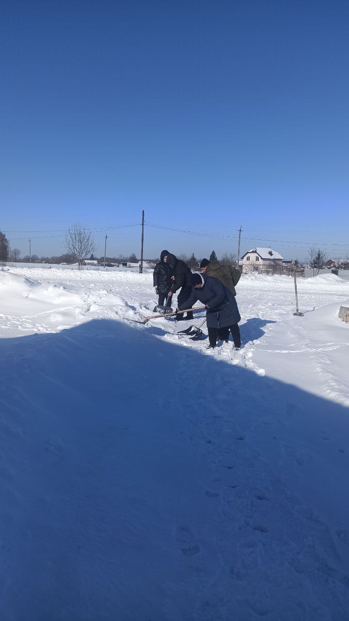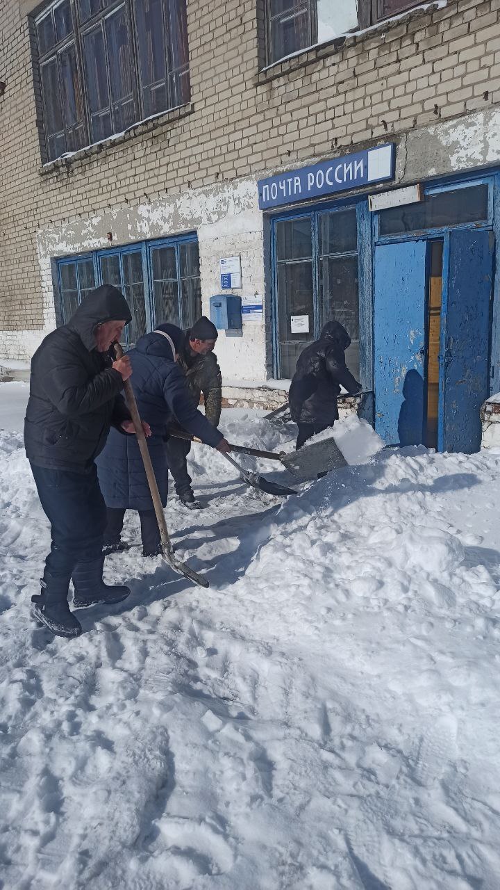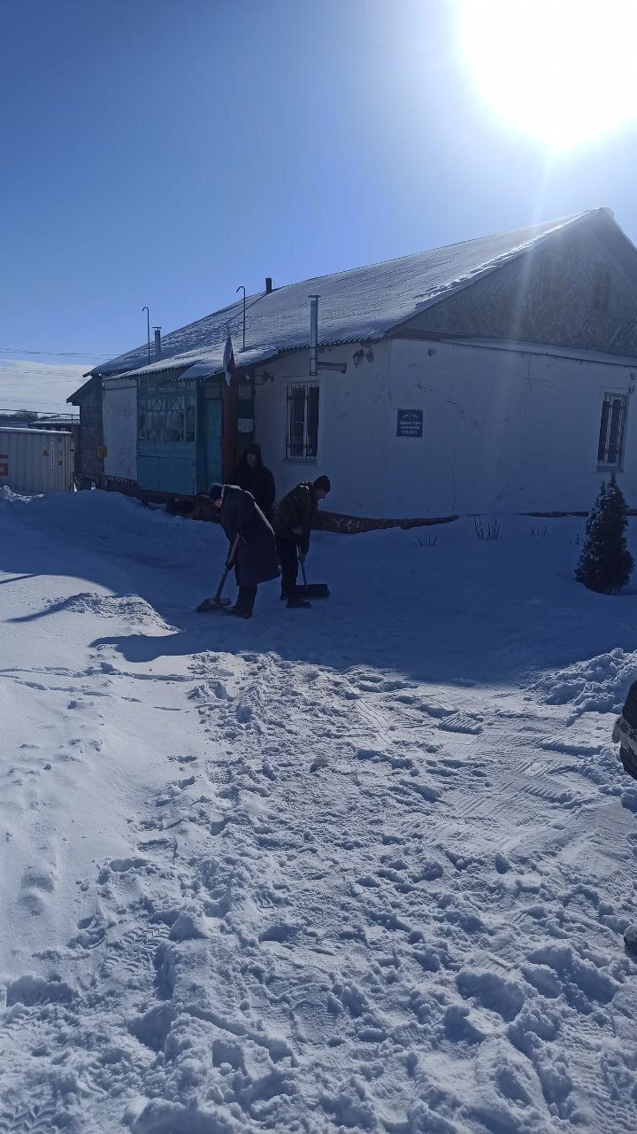 Хомутовский Работники расчистили подходы к зданиям, чтобы детям и их родителям было удобнее посещать занятия.
