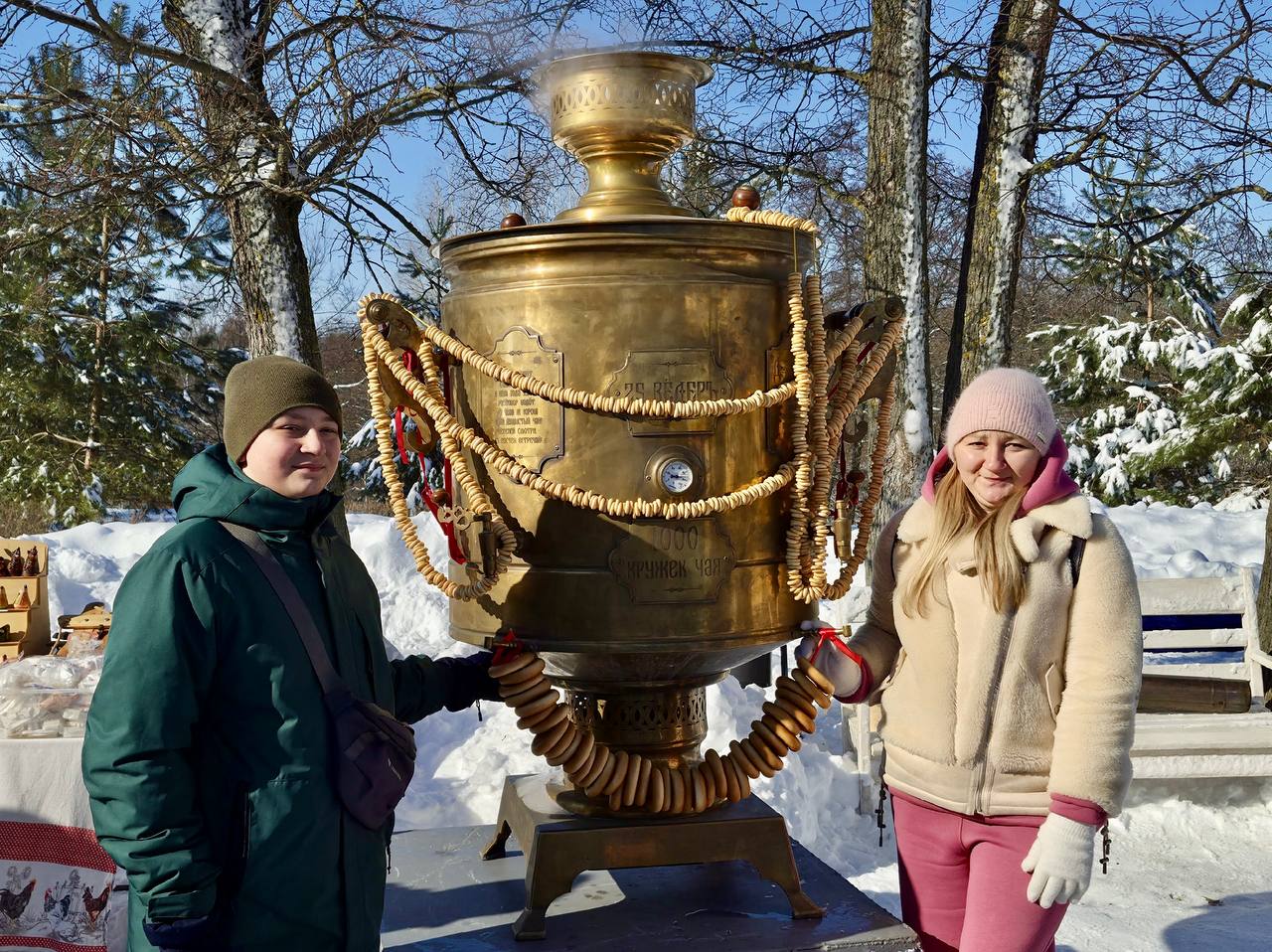 На территории расположили колоритные фотозоны с матрешками и вышитыми плетнями, а у самого большого самовара всех угощали горячим травяным чаем и блинами. Праздничное настроение создавали выступления фольклорного проекта «Культурное достояние», хора «Соловейко» и ансамбля «Досуг», которые исполнили народные песни и хиты прошлых лет.