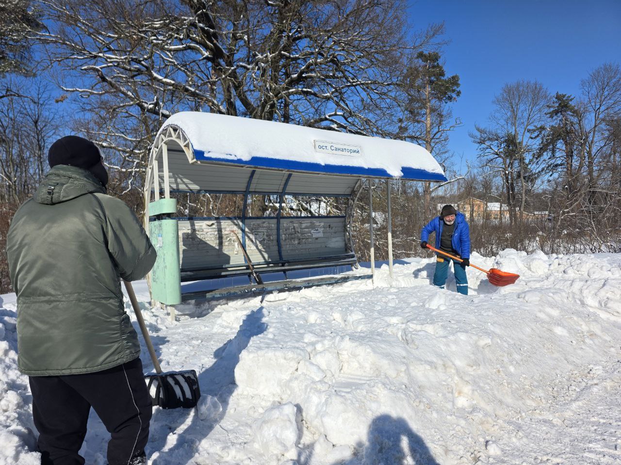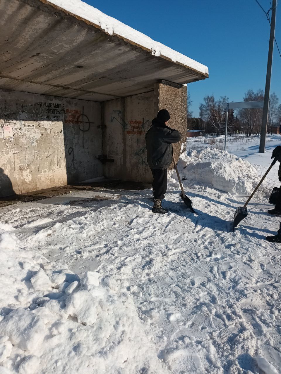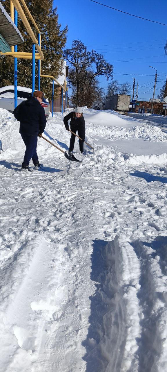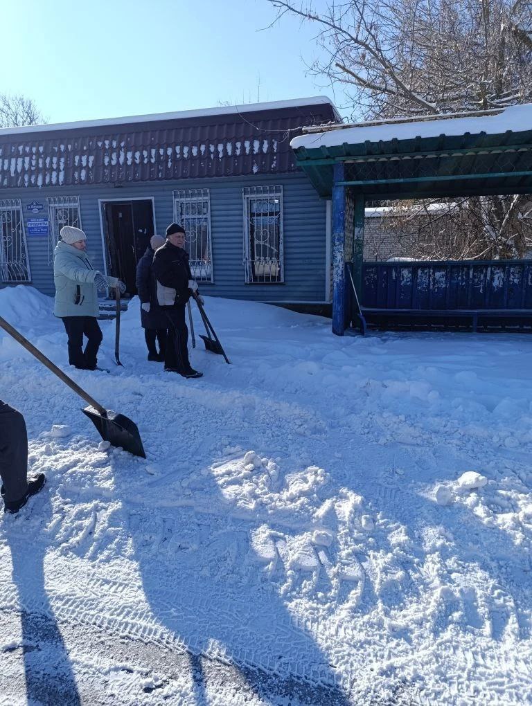 Благодаря их усилиям и слаженной работе очищены от снега не только территории самих учреждений, но и остановки общественного транспорта.