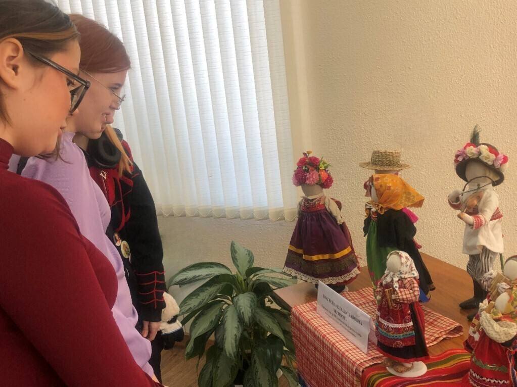 Вниманию присутствующих были представлены предметы народного творчества: женские головные уборы, украшения, текстильные куклы и детали женской одежды.