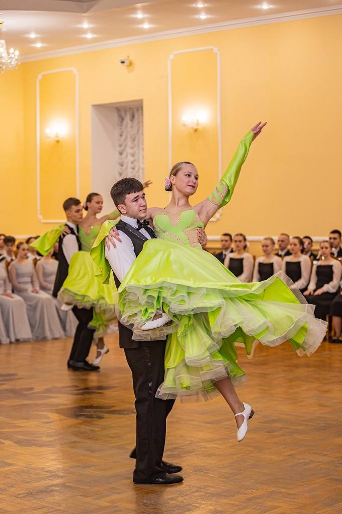 Программа бала включала гранд-марш, презентацию бальных ансамблей, исполнение вальса. На паркете царила торжественная атмосфера: пары изящно кружились в танце, демонстрируя мастерство и слаженность.