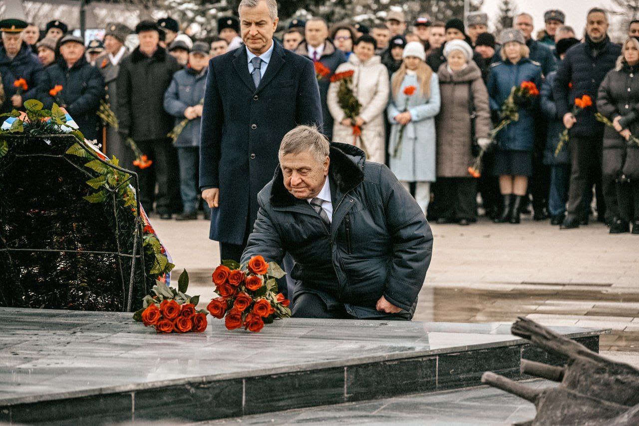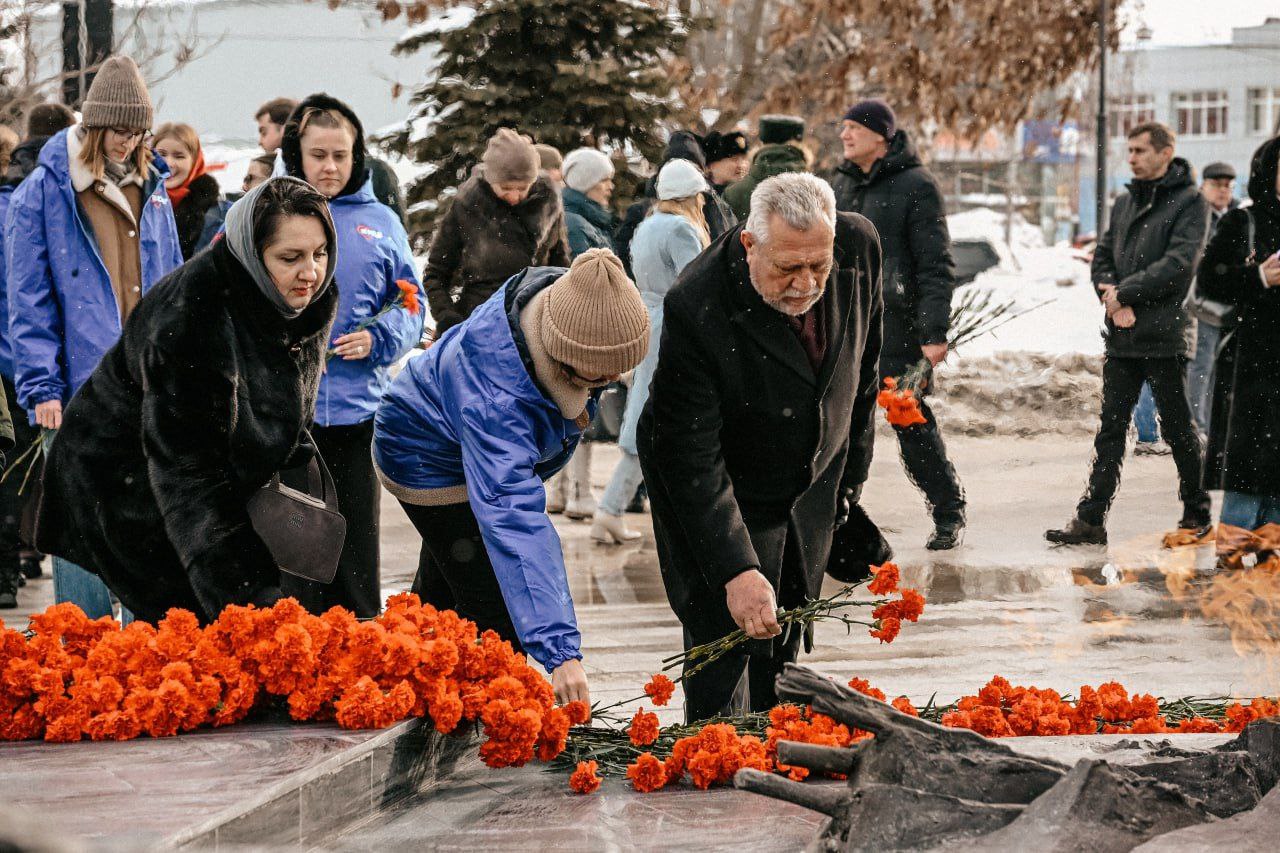 К Вечному огню цветы и венки возложили и. о. губернатора области Александр Чепик, и. о. председателя Курской областной Думы Александр Кичигин, депутаты, представители власти, молодёжных и ветеранских организаций, волонтёры, куряне.