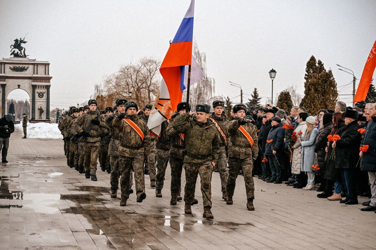 В областном центре торжественная церемония в честь Дня защитника Отечества прошла на мемориале "Курская дуга".