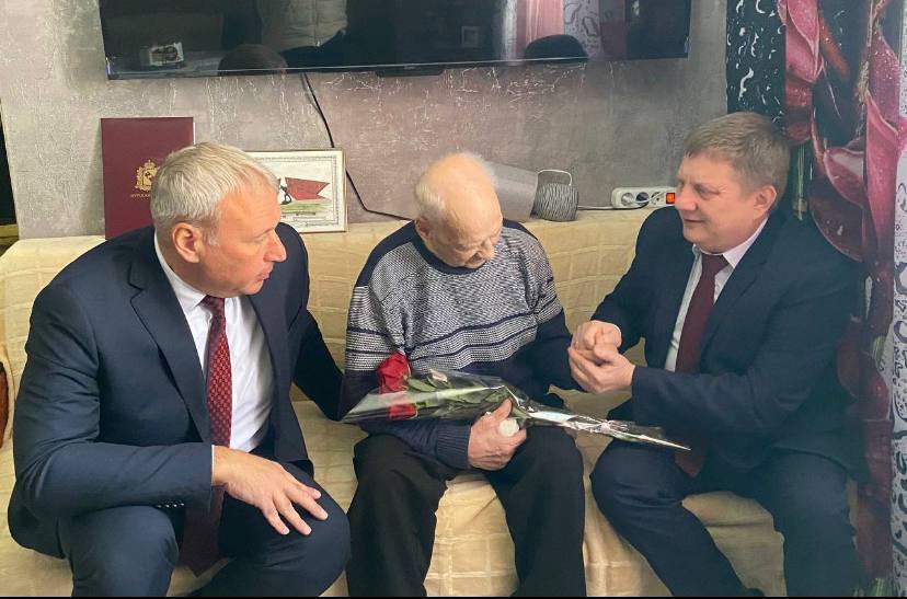 Партийцы Курского района поздравили ветерана Великой Отечественной войны Михаила Сергеевича Пронина с Днём защитника Отечества.