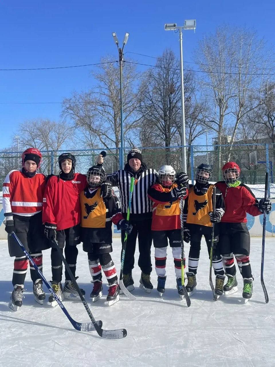 В Курске состоялся товарищеский хоккейный матч между школьниками и взрослыми игроками, посвященный Дню защитника Отечества.