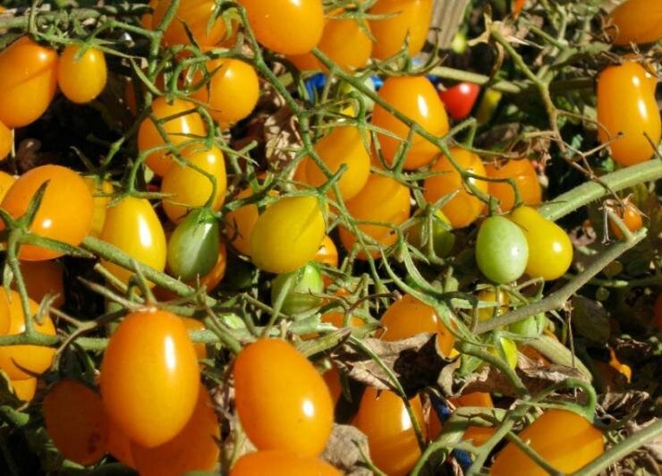 Этот сорт известен своими сладкими плодами, которые особенно вкусны при выращивании в теплицах или под укрытием. Растения достигают высоты двух метров, поэтому рекомендуется подвязывать их к опорам и регулярно удалять пасынки. Плоды небольшого размера – в открытом грунте их масса редко превышает 20 граммов, в защищённой среде они могут достигать 30-35 граммов. Ярко-жёлтая окраска и грушевидная форма делают их привлекательными для глаз. Кисти могут содержать до 15 плодов и весить более 500 граммов, а медовые нотки в вкусе делают их настоящим деликатесом.