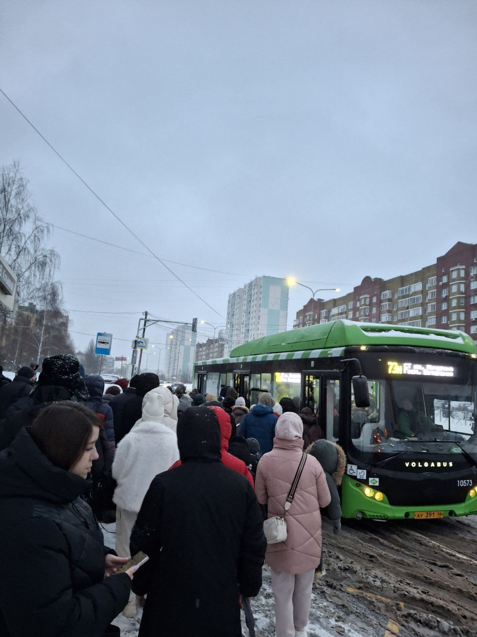 — Вот такая обстановка утром на проспекте Клыкова. С 7 утра не было ни одного автобуса 73М и 35М. В 07:45 приехал долгожданный 73М, в который вошли максимум 2-3 человека. Эти маршруты проезжают через весь Северо-Западный и Юго-Западный микрорайоны. Их катастрофически не хватает даже при соблюдении временных рамок. Такая ситуация происходит уже не впервые. Огромная просьба к администрации города — обратите уже наконец внимание на работу общественного транспорта.