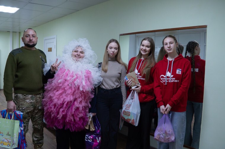 В рамках мероприятия волонтёры посетили ФГБУЗ МСЧ № 125 ФМБА России, где тепло поздравили военных с праздником. С ними был аниматор в костюме фьёка, который поздравлял бойцов и создавалось праздничное настроение, поднимая боевой дух.