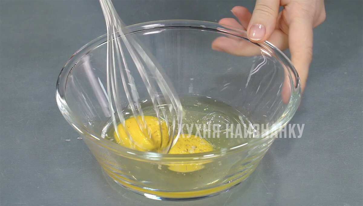 Далее яйца следует взбить с добавлением соли и специй — можно использовать черный перец или любые другие по вкусу.