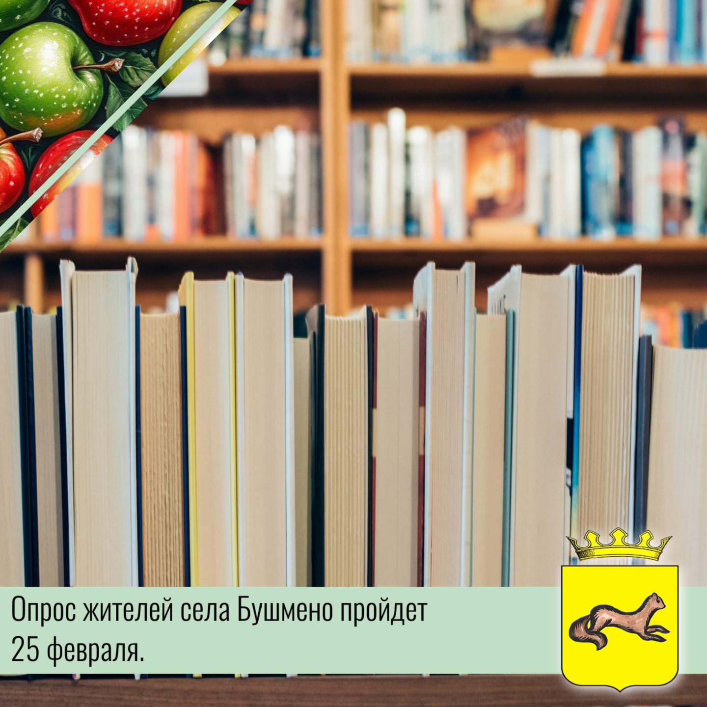 Администрацией Обоянского района проводится подворовой опрос граждан, проживающих в селе Бушмено муниципального образования «Каменское сельское поселение» в целях учета мнения населения по вопросу целесообразности ликвидации Бушменской сельской библиотеки, расположенной по адресу: Курская область, Обоянский район, с. Бушмено, ул Выгон, д 15; Бушменского Сельского клуба, расположенного по адресу: Курская область, Обоянский район, с.Бушмено ул.Выгон, д.16.