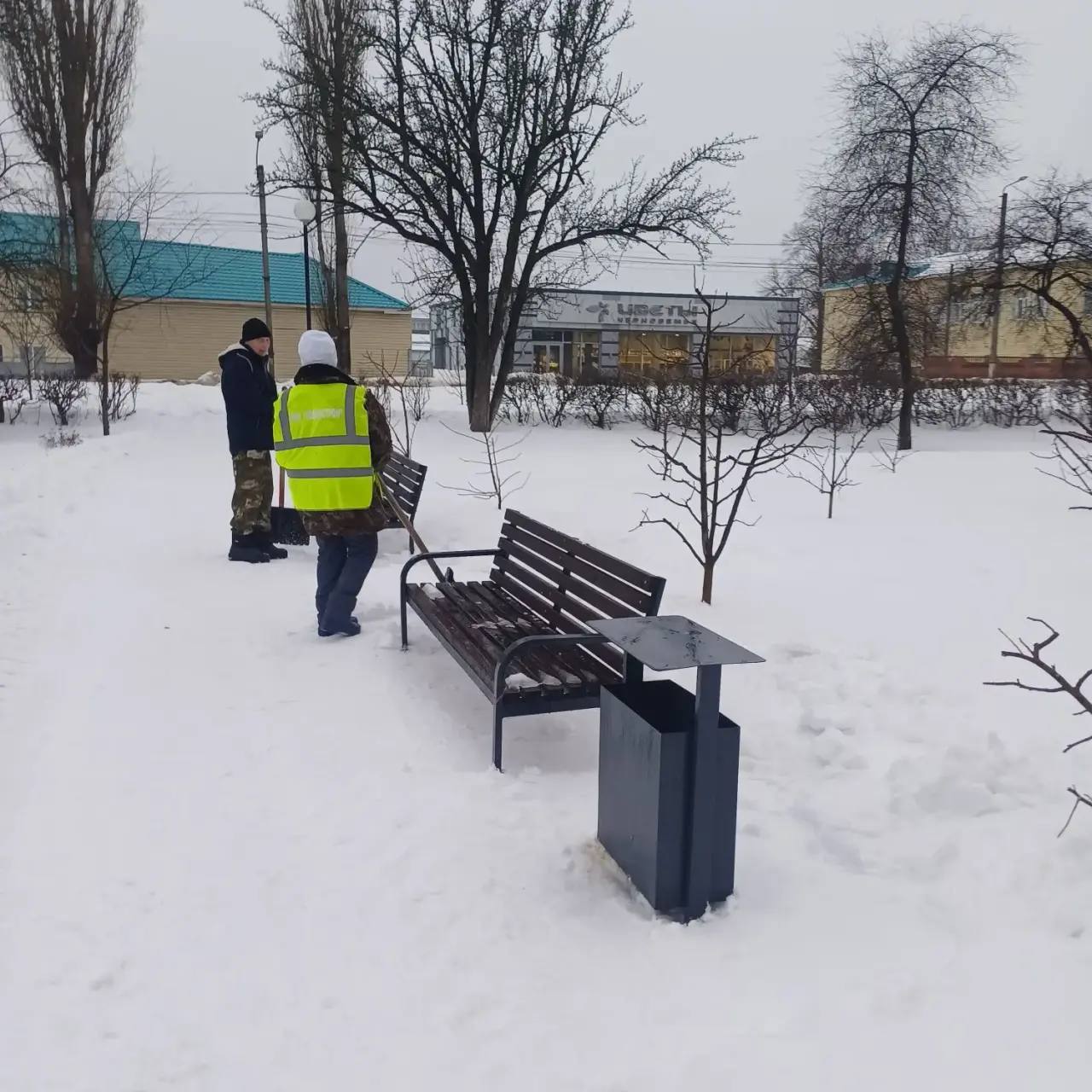 В комитете городского хозяйства рассказали, что бригады обрабатывают пешеходные зоны песко-соляной смесью и реагентами, очищают малые архитектурные формы и убирают мусор.