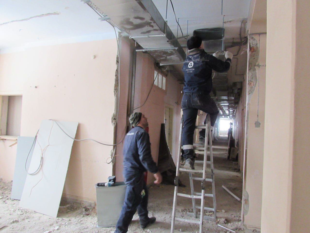Напоминаю, что в районной больнице продолжается второй этап капитального ремонта, осуществляемый в рамках реализации национального проекта «Продолжительная и активная жизнь». Совместно с главным врачом А.Н.Хардиковым внимательно изучили текущее состояние работ. В настоящее время осуществляется ремонт внутри помещений второго и третьего этажей, проводится монтаж современных систем электроснабжения, а также осуществляется утепление и облицовка фасада здания.