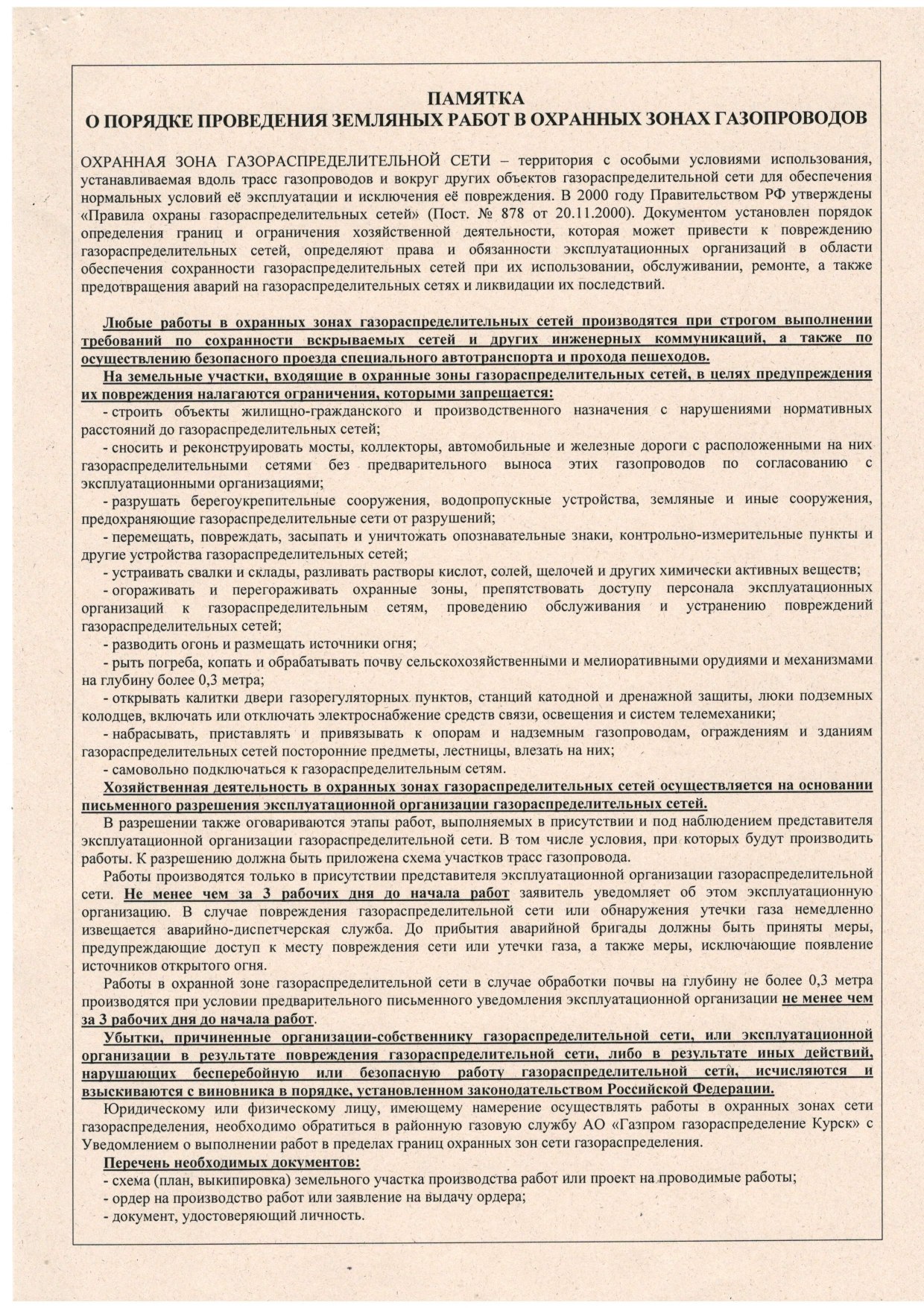 АО «Газпром газораспределение Курск» и Администрация Октябрьского района обращается к Вам с просьбой внимательно ознакомиться с памяткой, касающейся проведения любых земляных работ на территории нашего района, особенно в тех местах, где проходят газопроводы.