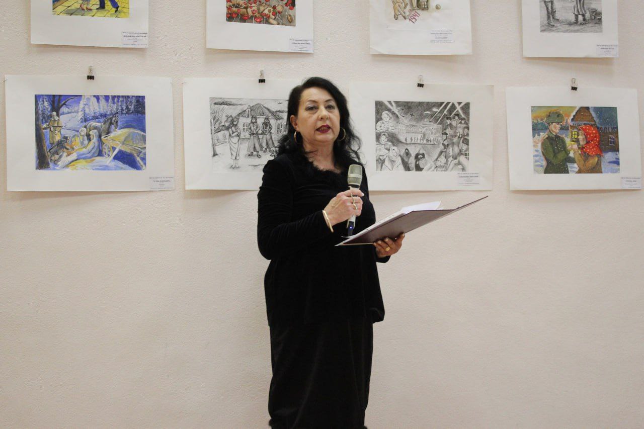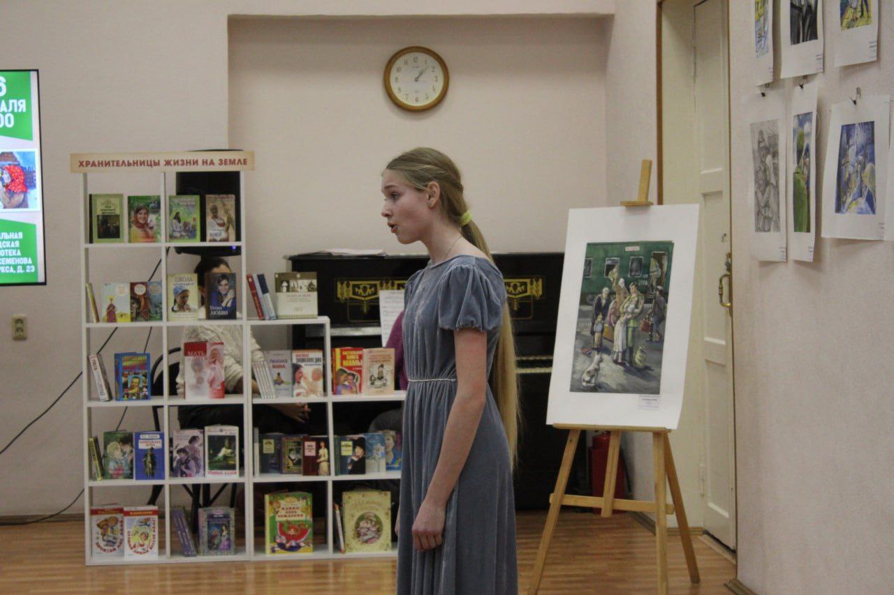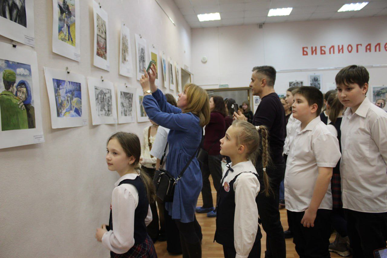 Выставка творческих работ «Женщина на линии судьбы», где представлены патриотические рисунки обучающихся детской школы искусств №5 имени Д.Д. Шостаковича, собрала множество гостей в Центральной городской библиотеке имени Ф. А. Семенова в рамках литературно-эстетического проекта «Библиогалерея».