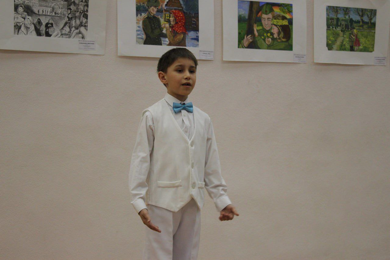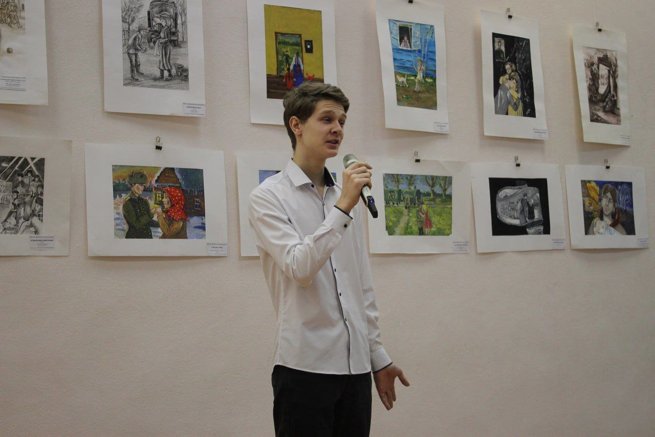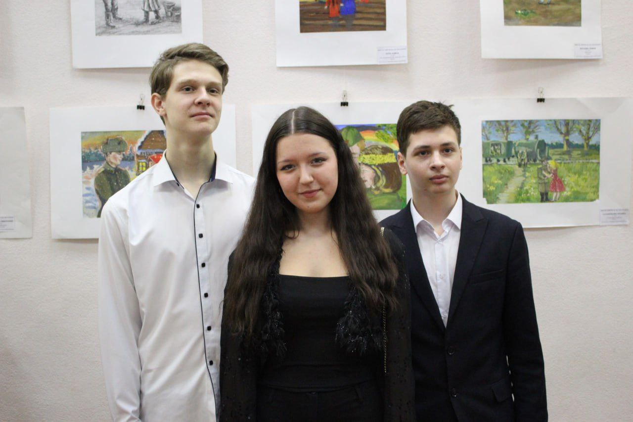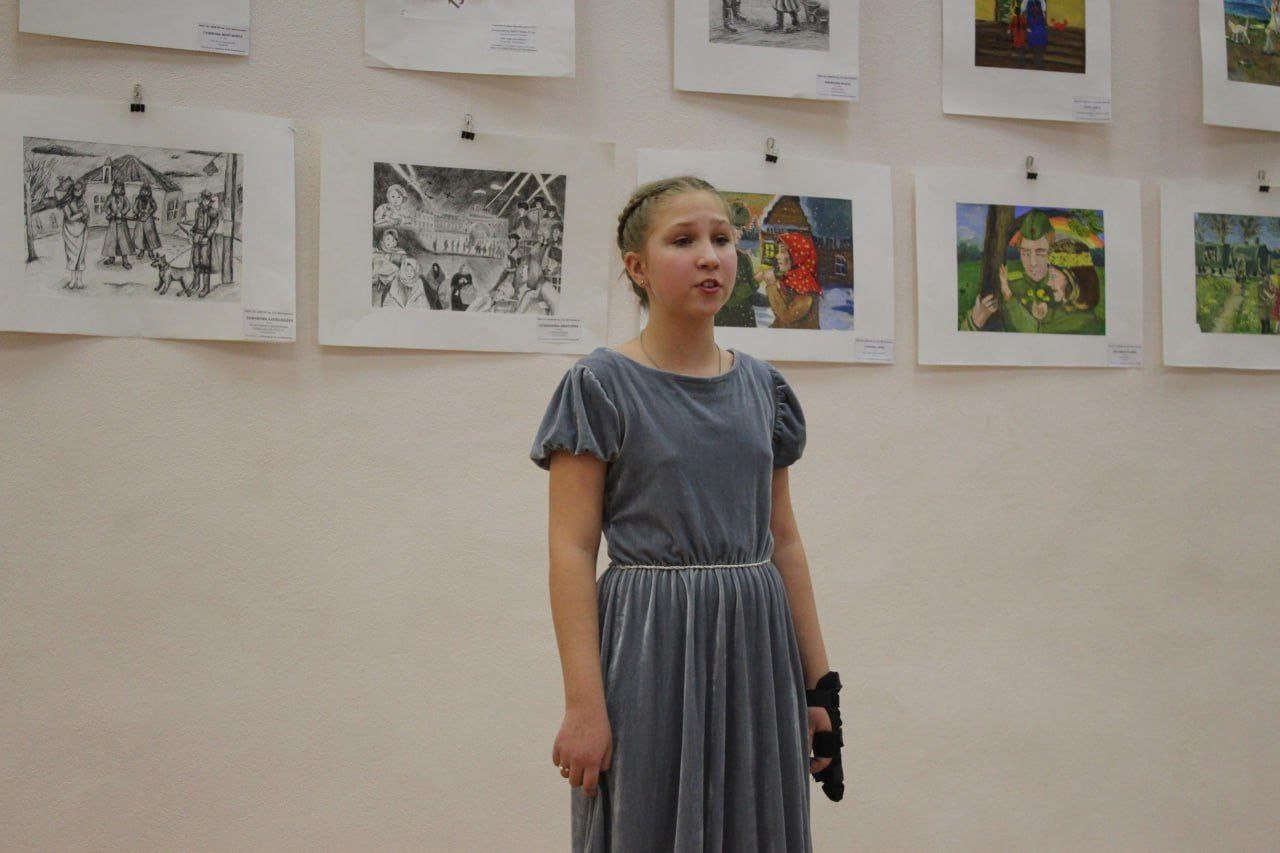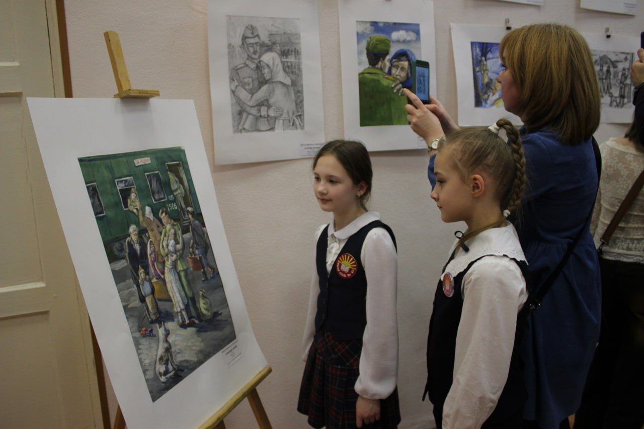 Будущие художники использовали гуашь, карандаш и гелевые ручки. «Седьмая симфония», «Радостная встреча», «Весна, 45-го», «Журавли», «Мама, я вернулся», «После долгой разлуки», — за каждым штрихом в этих и других работах, объединенных военно-патриотической темой (всего их более 20), стоит огромный труд учеников, преподавателей и руководства школы.