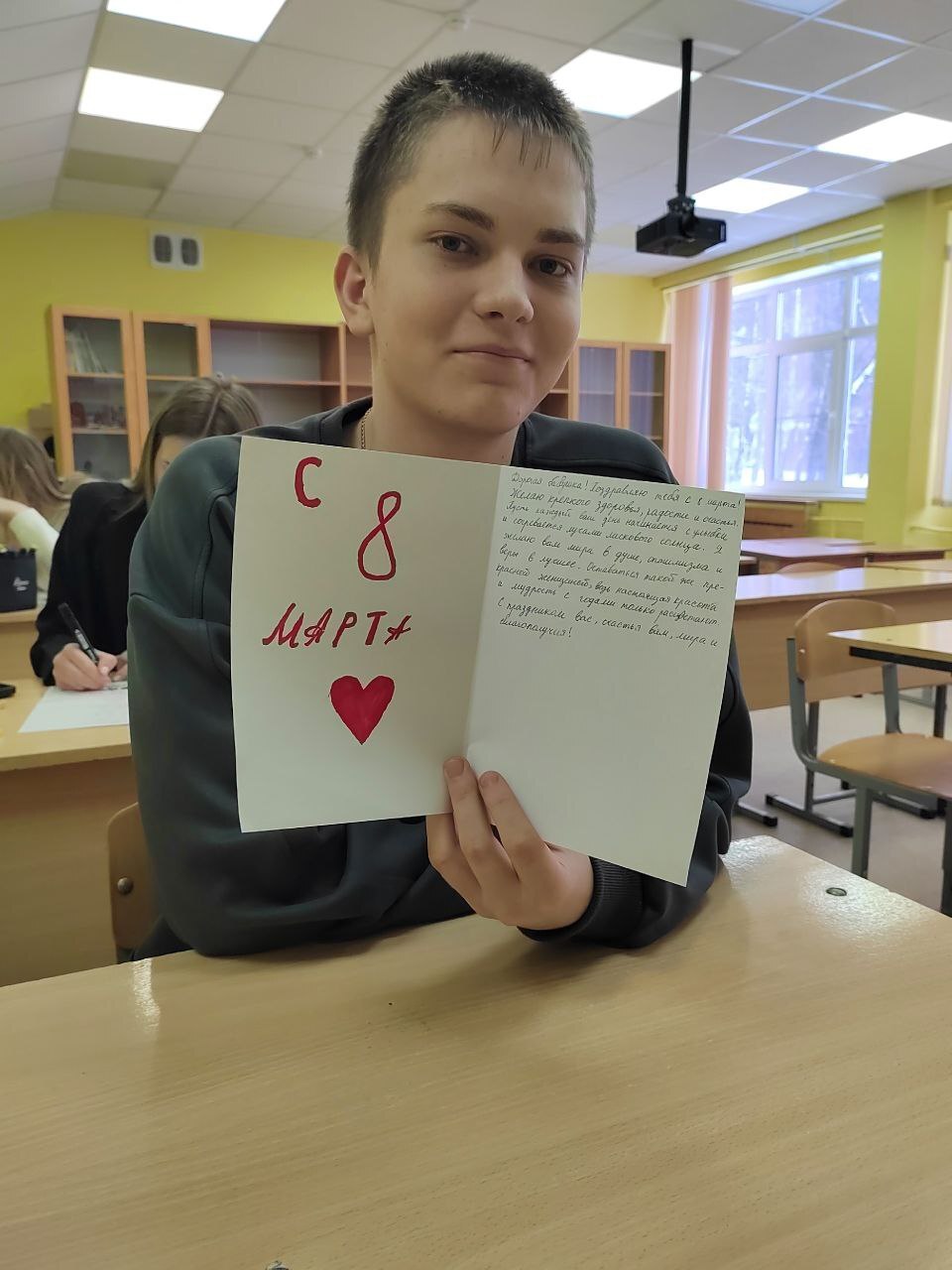 Надеемся, что эти открытки будут вызывать улыбки на лицах получателей. В своих поздравлениях ученики поделились своими пожеланиями здоровья, счастья и тепла.