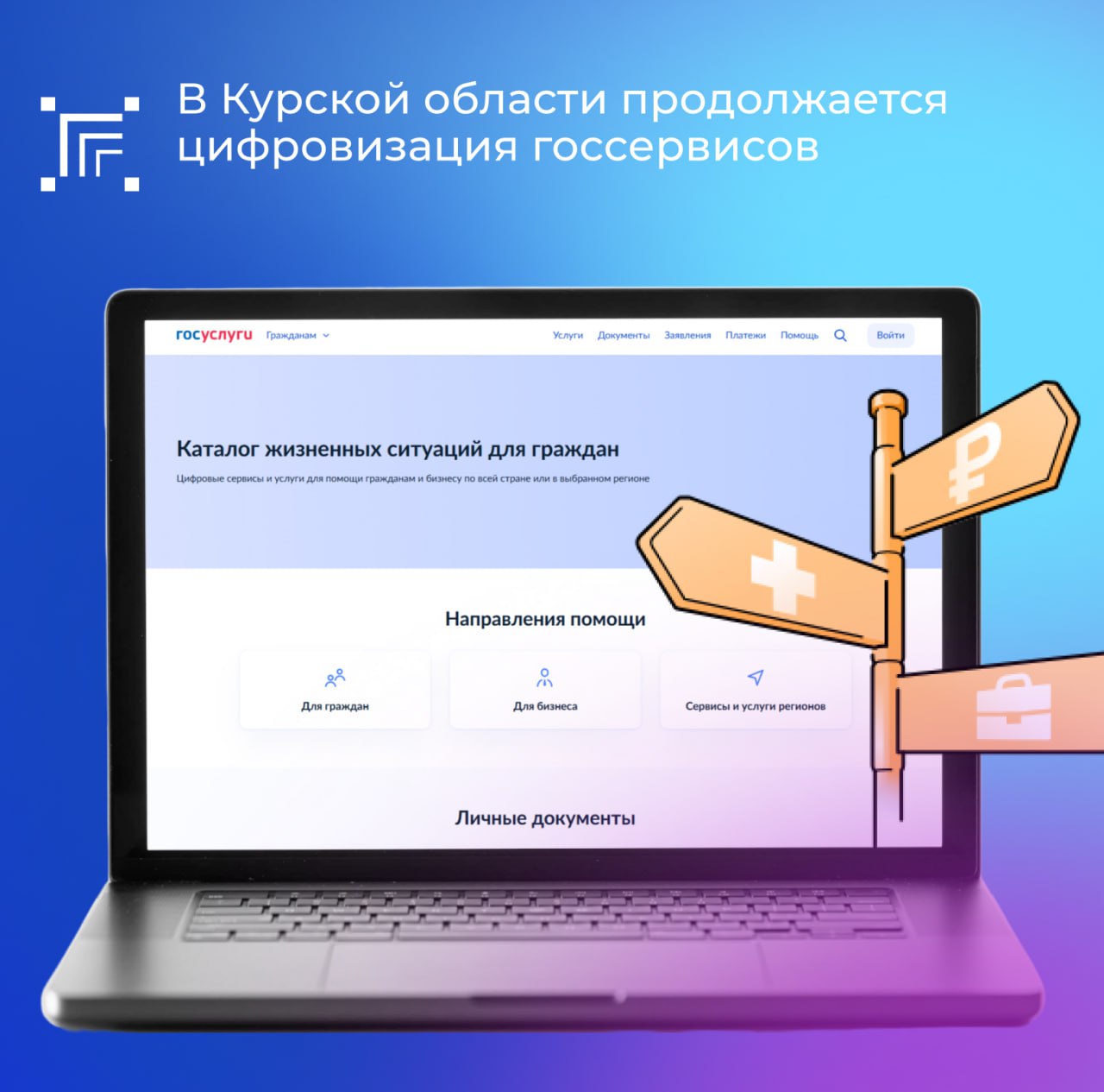 В рамках реализации жизненной ситуации «Переезд граждан из зоны обстрелов» на портале ЕПГУ был создан Сервис комплексного информирования граждан «Единый цифровой профиль жителя курского приграничья». Сервис позволяет получить информацию о 18 мерах поддержки, адаптированную под статус пользователя, а также подать заявление на получение в электронном виде 8 мер поддержки.