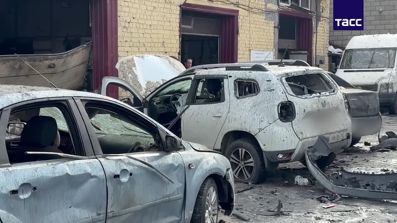 Последствия атаки БПЛА со стороны ВСУ на автосервис в Курске.