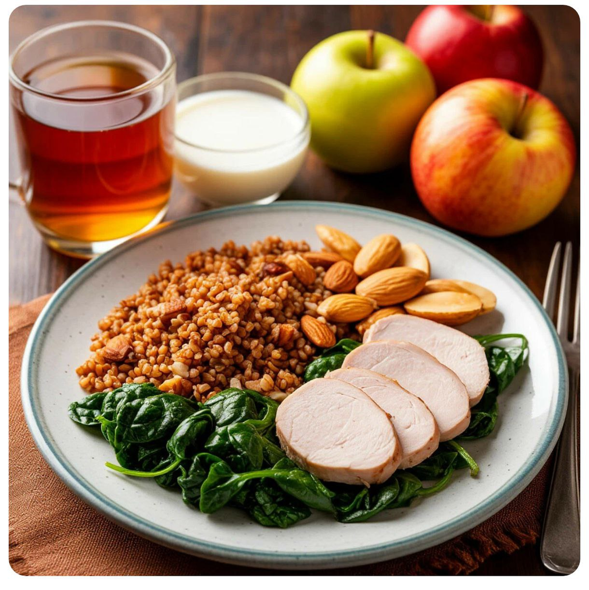 - Продукты, богатые триптофаном: Молочные продукты, птица, орехи и семена помогают организму вырабатывать серотонин и мелатонин. Хорошие варианты: теплое молоко, индейка, миндаль.