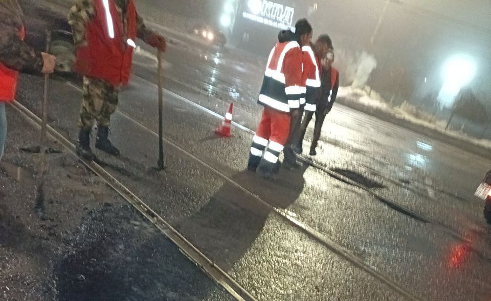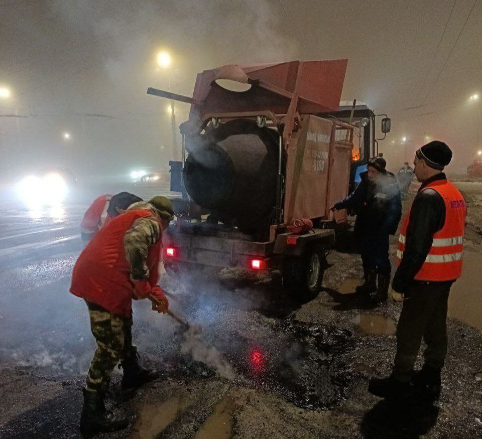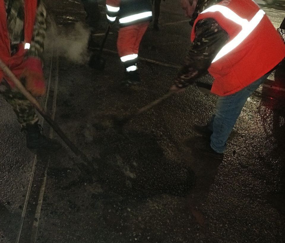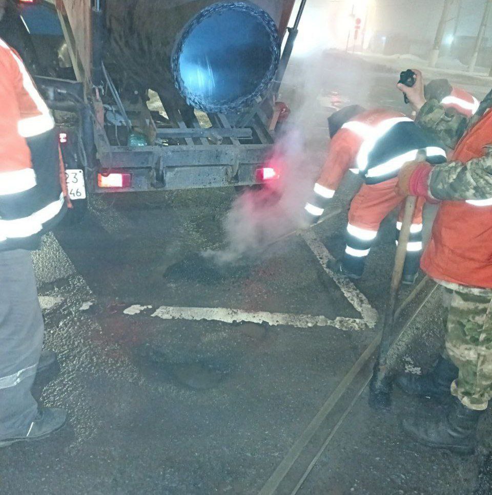 В ходе работ была использована литая асфальтобетонная смесь для устранения наиболее поврежденных участков проезжей части.