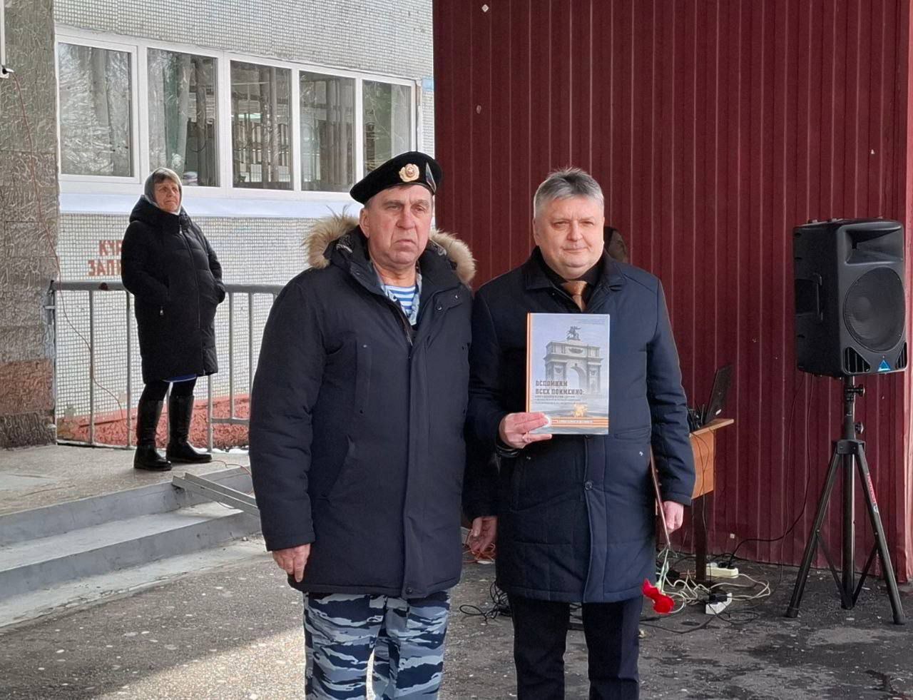 Член совета Курского отделения Ассоциации ветеранов боевых действий органов внутренних дел и Внутренних войск России Владимир Быканов рассказал собравшимся, что вышел новый том издания, посвященного землякам, погибшим на СВО, в том числе выпускникам школы № 29. Он вручил экземпляр книги «Вспомним всех поименно» Сергею Острикову.
