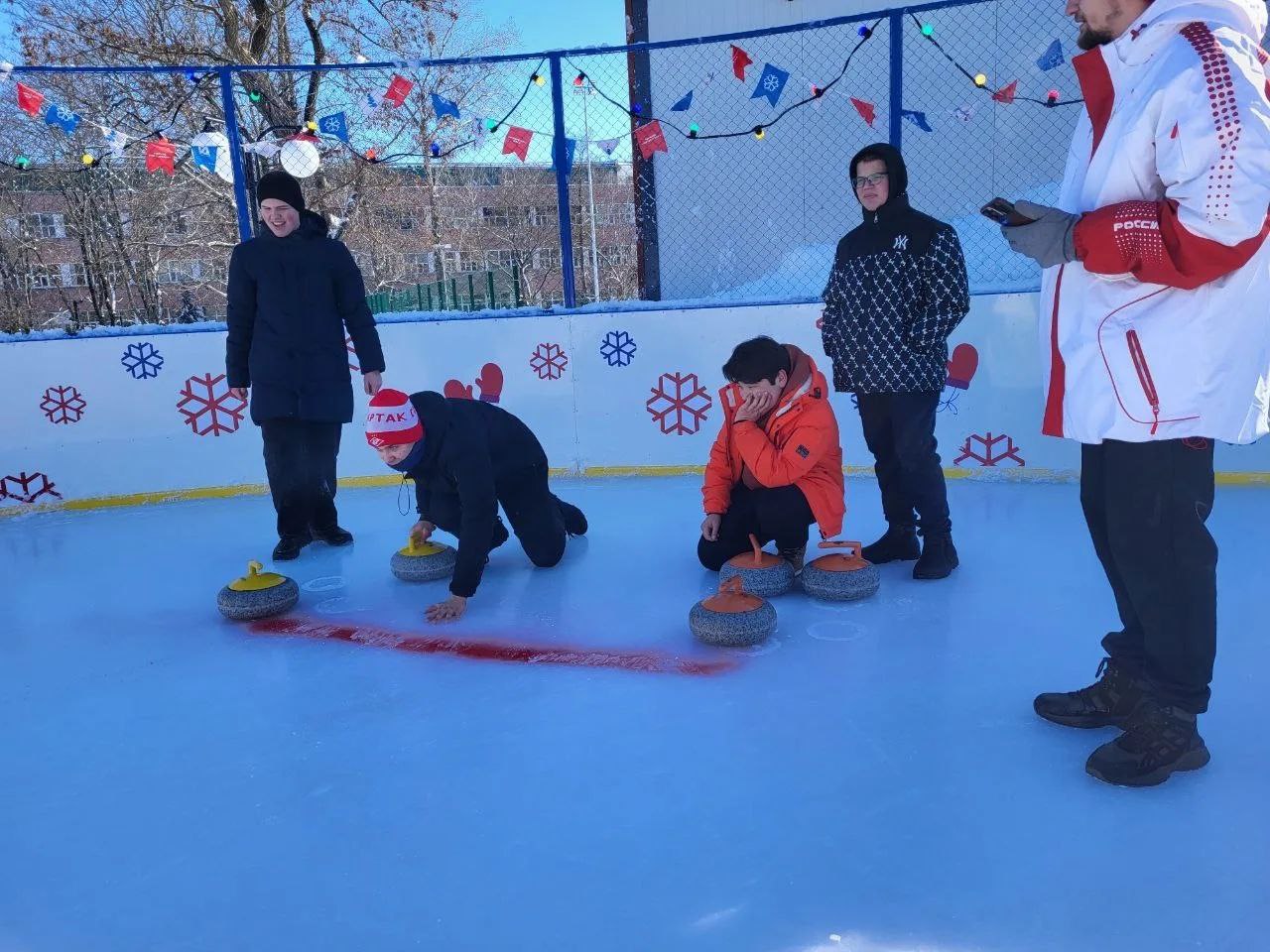 Школьники попробовали свои силы в катании на коньках, кёрлинге, лазертаке, хоккейной меткости.