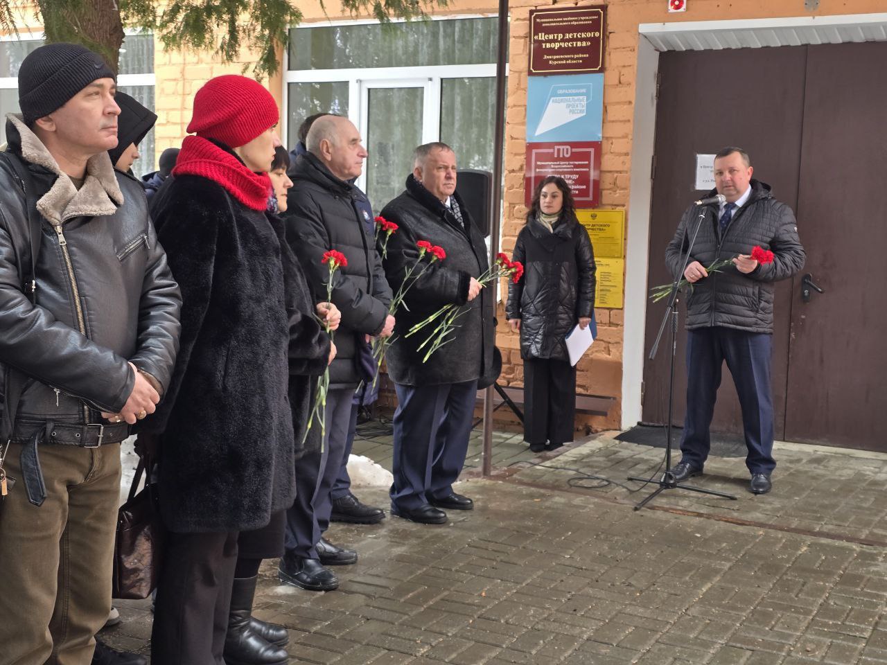 У стен здания Управления образования, опеки и попечительства Администрации Дмитриевского района состоялся митинг, посвященный торжественному открытию мемориальной доски в память о доблестных землячках – партизанках-подпольщицах, чьими руками ковалась победа в тылу: Гладышевой Софье Петровне, Филиной Анастасии Александровне и Кузьминой Надежде Ивановне.