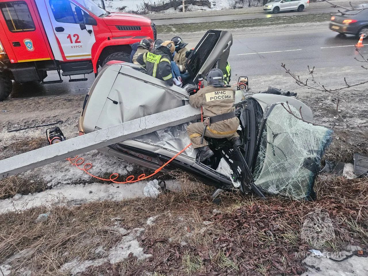 Рано утром в деревне Рассыльная Курского района автомобиль «Киа Сид» врезался в столб линии электропередач. Водитель, 37-летний мужчина, оказался заблокирован в салоне.