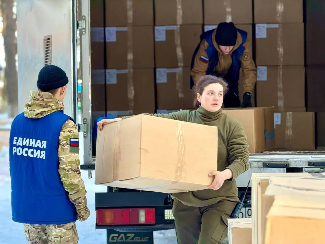 Очередную партию обуви для волонтеров Единой России «Курского рубежа» и «Белгородского рубежа» получили от организации «МАМАНОНСТОП».