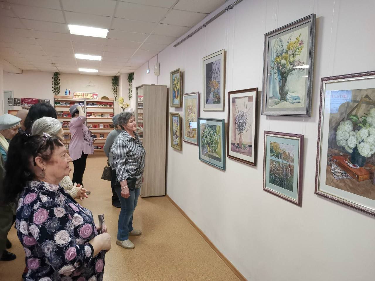 Участники мероприятия познакомились с работами, представленными на выставке, поздравили художницу с таким важным событием и пожелали ей новых творческих успехов. Всего было представлено девять работ: «Подсолнухи», «Жасмин», «Полевые цветы», «Осенний букет» и другие.