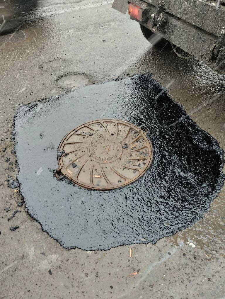Работы начались сегодня после массовых жалоб жителей в соцсетях. Подрядчик использует литую асфальтобетонную смесь: специалисты отфрезеровали и очистили ямы, уложив новое покрытие.