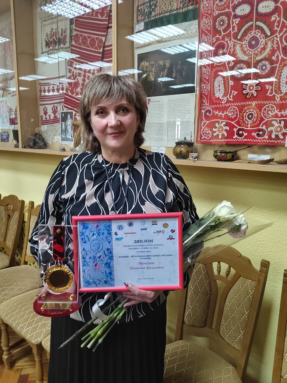 Сегодня Татьяна Васильевна была отмечена, как победительница регионального этапа за большой вклад в укрепление российских народных традиций. Эта победа- подтверждение высокого статуса женщины, проживающей в сельской местности.