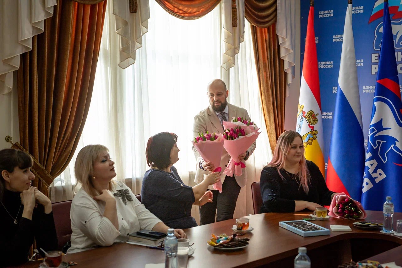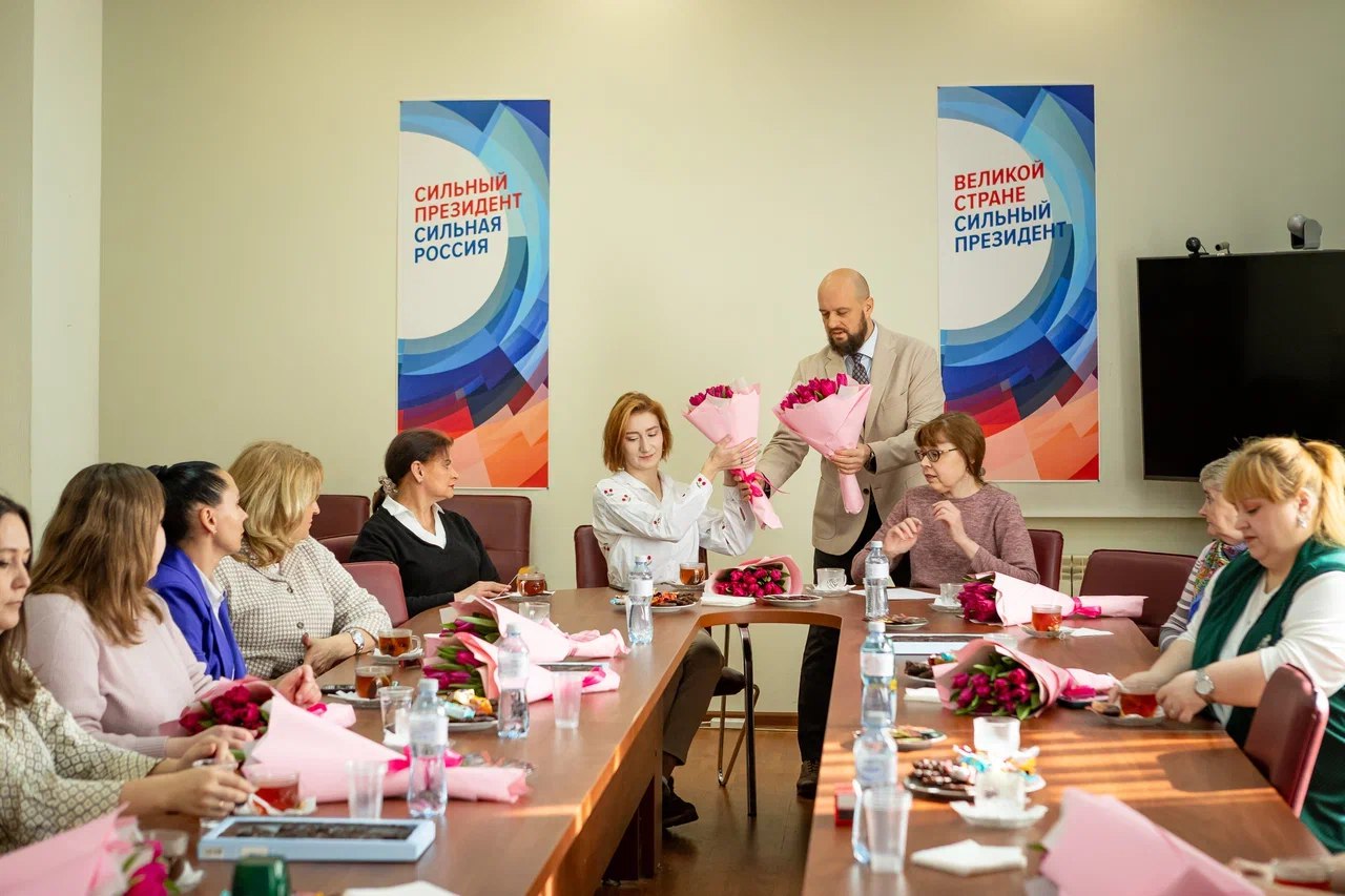 Во время непринуждённого общения за чашечкой чая он поздравил женщин с приближающимся праздником и обсудил насущные городские вопросы.